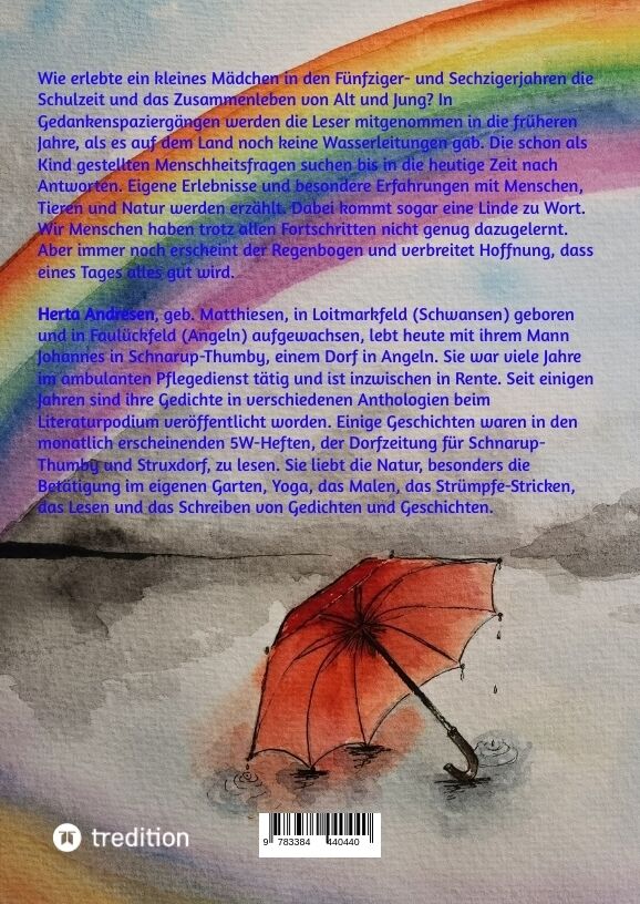 Wie erlebte ein kleines Mädchen in den Fünfziger- und Sechzigerjahren die Schulzeit und das Zusammenleben von Alt und Jung? In Gedankenspaziergängen werden die Leser mitgenommen in die früheren Jahre, als es auf dem Land noch keine Wasserleitungen gab. Die sch...