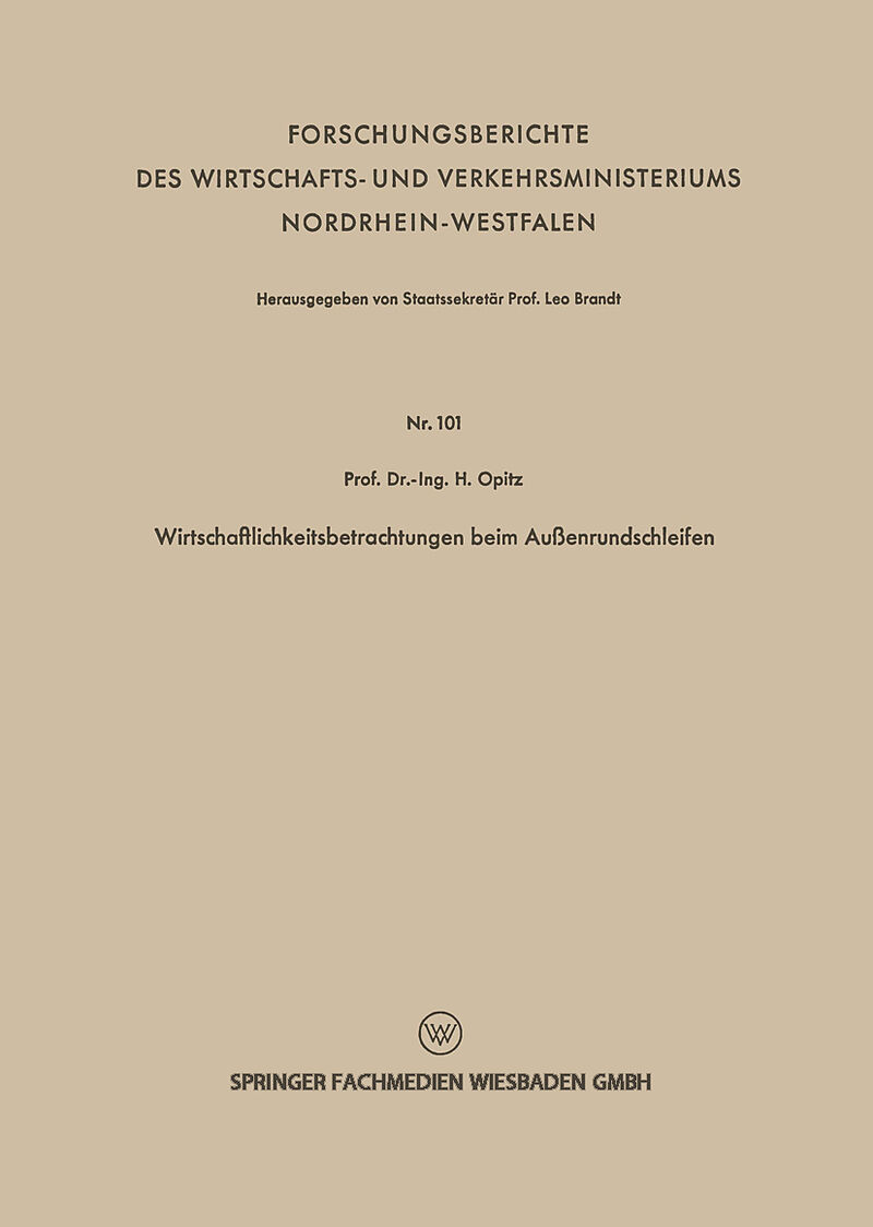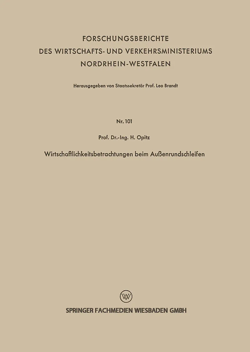 Inhalt Gliederung.- I. Ermittlung der Standzeit beim Schleifen.- 1. Einleitung.- 2. Das Ausgeben einer Schleifscheibe und ihre zeitliche Veränderung.- 3. Beschreibung des Standzeitprüfgerätes.- 4. Verschleiß und Profilhaltigkeit der Schleifscheibe beim Genauig...