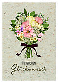 Faltkarte mit Umschlag, jeweils 16,2 x 11,4 cm, VE für den Handel: 6 Stück je Motiv. Die Karten sind auf Naturpapier gedruckt und mit Goldfolie veredelt.