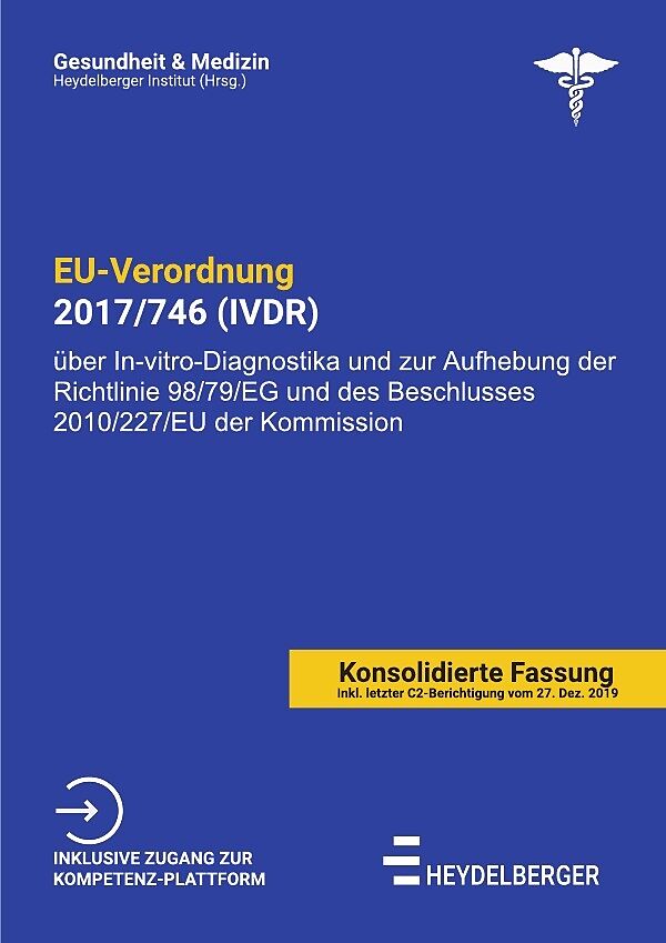Konsolidierte Fassung der EU-Verordnung 2017/746 (IVDR) inkl. letzter Berichtigung (C2) vom 27.12.2019 als Nachschlagewerk & Arbeitsheft im handlichen A4-Format für Experten im Gesundheitsbereich. >> Konsolidierte Fassung der IVDR inkl. Berichtigung (C2) v...