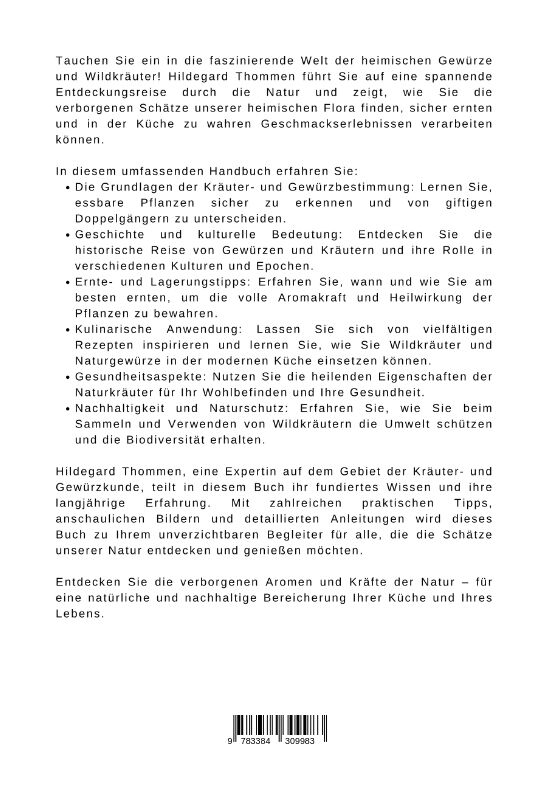 Tauchen Sie ein in die faszinierende Welt der heimischen Gewürze und Wildkräuter! Hildegard Thommen führt Sie auf eine spannende Entdeckungsreise durch die Natur und zeigt, wie Sie die verborgenen Schätze unserer heimischen Flora finden, sicher ernten und in d...