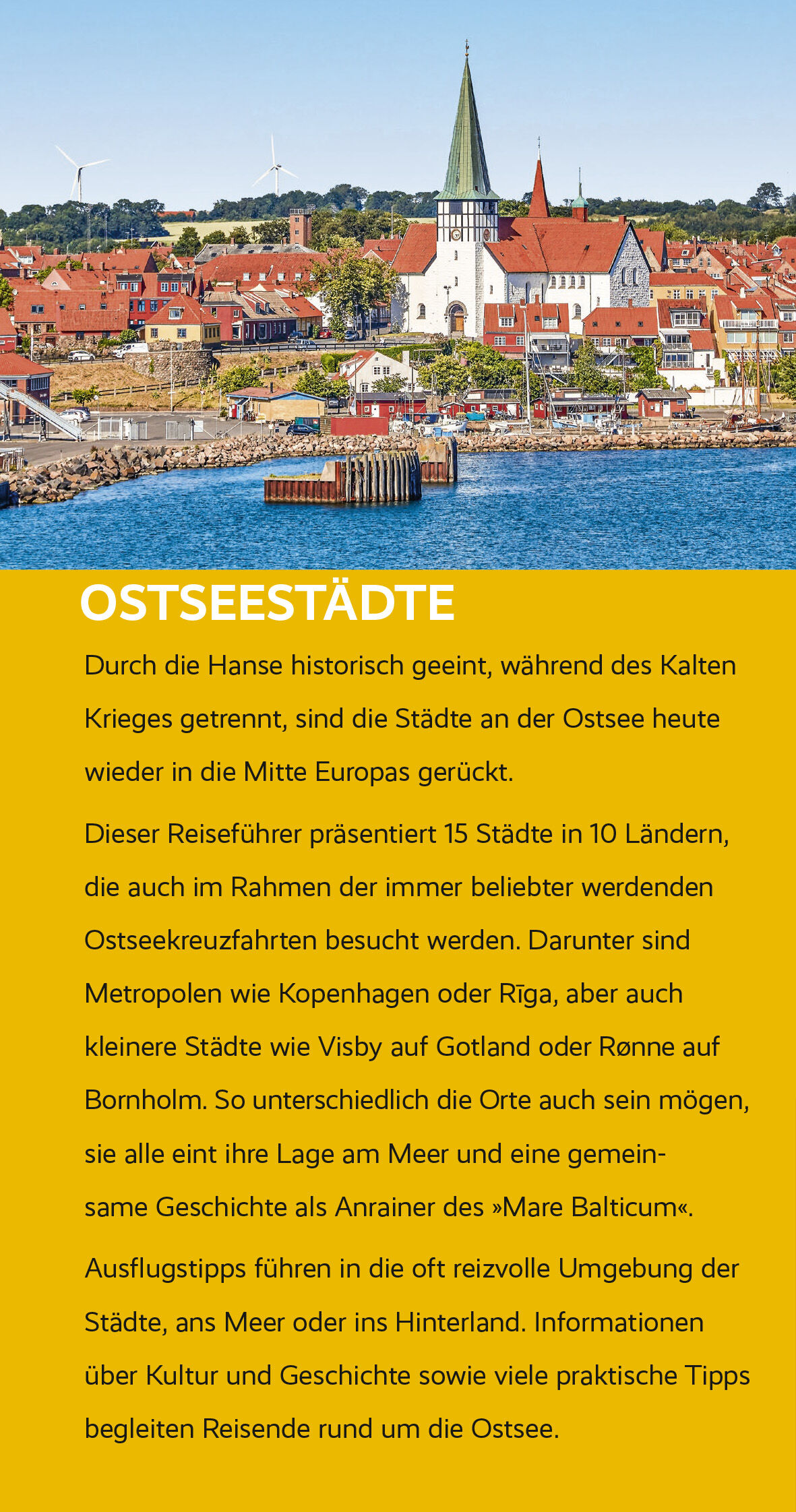 15 auf einen Streich: Der Trescher-Reiseführer OSTSEESTÄDTE präsentiert die spannendsten Städte des »Mare Balticum«. Am schönsten auf einer Kreuzfahrt, aber auch mit dem Wohnmobil oder dem Rad zu entdecken. Einst in der Hanse verbunden, im Kalten Krieg durch d...15 auf einen Streich: Der Trescher-Reiseführer OSTSEESTÄDTE präsentiert die spannendsten Städte des »Mare Balticum«. Am schönsten auf einer Kreuzfahrt, aber auch mit dem Wohnmobil oder dem Rad zu entdecken. Einst in der Hanse verbunden, im Kalten Krieg durch den Eisernen Vorhang getrennt, sind die Ostseestädte heute längst wieder in die Mitte Europas gerückt. Ob Metropolen wie Kopenhagen oder Rga, ob Hanse-Königinnen wie Lübeck und Gdask (Danzig) oder kleinere Städte wie Visby auf Gotland und Rønne auf Bornholm so unterschiedlich sie sein mögen, sie alle eint ihre Geschichte als Anrainer des »Mare Balticum«. Mächtige backsteingotische Kirchen schmücken die oft als Welterbe geschützten Altstädte. In den Häfen herrscht ein Gewusel aus Tankern und Segeljachten, Fähren und Kreuzfahrtschiffen. Von Kiel geht die Reise hoch in den europäischen Norden über Tallinn nach Helsinki und Stockholm. 15 Städte in 10 Ländern, denn auch das von Nordseewasser umspülte Oslo ist selbstverständlich dabei. Detaillierte Stadtrundgänge und Ausflüge ins jeweils reizvolle Umland machen mit allen bedeutenden Sehenswürdigkeiten bekannt. Unterhaltsame Essays zu Themen rund um die Ostsee laden zum Schmökern ein. Ländersteckbriefe sowie viele Hintergrundinformationen zu Geschichte, Natur und Kultur ergänzen die gewonnenen Eindrücke. Dazu gesellen sich Tipps für Freizeitaktivitäten, und auch ein Wörterbuch mit den wichtigsten Vokabeln der einzelnen Landessprachen darf natürlich nicht fehlen. Der Trescher-Reiseführer OSTSEESTÄDTE eignet sich sowohl für Kreuzfahrturlauber, die alles über die Schiffswahl und das Leben an Bord erfahren möchten, als auch für Individualreisende. Ihnen gibt das Buch ausführliche Infos zu Bahn-, Schiffs- und Flugverbindungen an die Hand, sei es für eine Auto-, Wohnmobil- oder Motorradreise oder auch unterwegs mit dem Fahrrad auf dem Ostseeküsten-Radweg. Ergänzt um zahlreiche praktischen Reisetipps, Routenvorschläge und Empfehlungen von Gastronomie, Kultur- und Nachtleben bis Shopping und Unterkunft, ist das Buch der perfekte Gefährte auf Besuch in den schönsten Städten des »Mare Balticum«. weitere Reiseführer für Kreuzfahrten und zu an der Ostsee gelegenen Ländern und Regionen finden Sie auf der Website des Trescher Verlags.