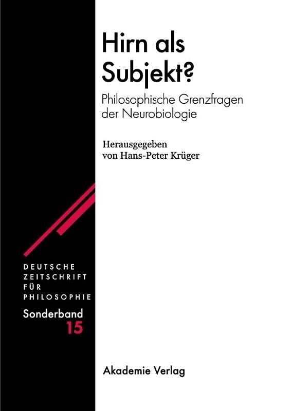 Hans-Peter Krüger (Hrsg.) Hirn als Subjekt? - Philosophische Grenzfragen der Neurobiologie Deutsche Zeitschrift für Philosophie. Sonderband, Bd. 15 Während seit einiger Zeit im Feuilleton ein Kulturkampf zwischen Vertretern des "Gehirns" und des &quo...Hans-Peter Krüger (Hrsg.)