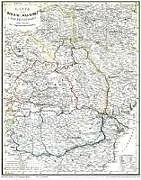 Karte von der Moldau, Walachei und Siebenbürgen mit Bessarabien, 1848 Basarabia, Româneasca, Transsilvanien, Ardeal, Transilvania, Erdély, Moldova, Siweberjen Außenformat (BxH) 59 x 48 cm - Darstellungsgröße (BxH) 58 x 45 cm. Grenz-und flächenkolorierte Karte....