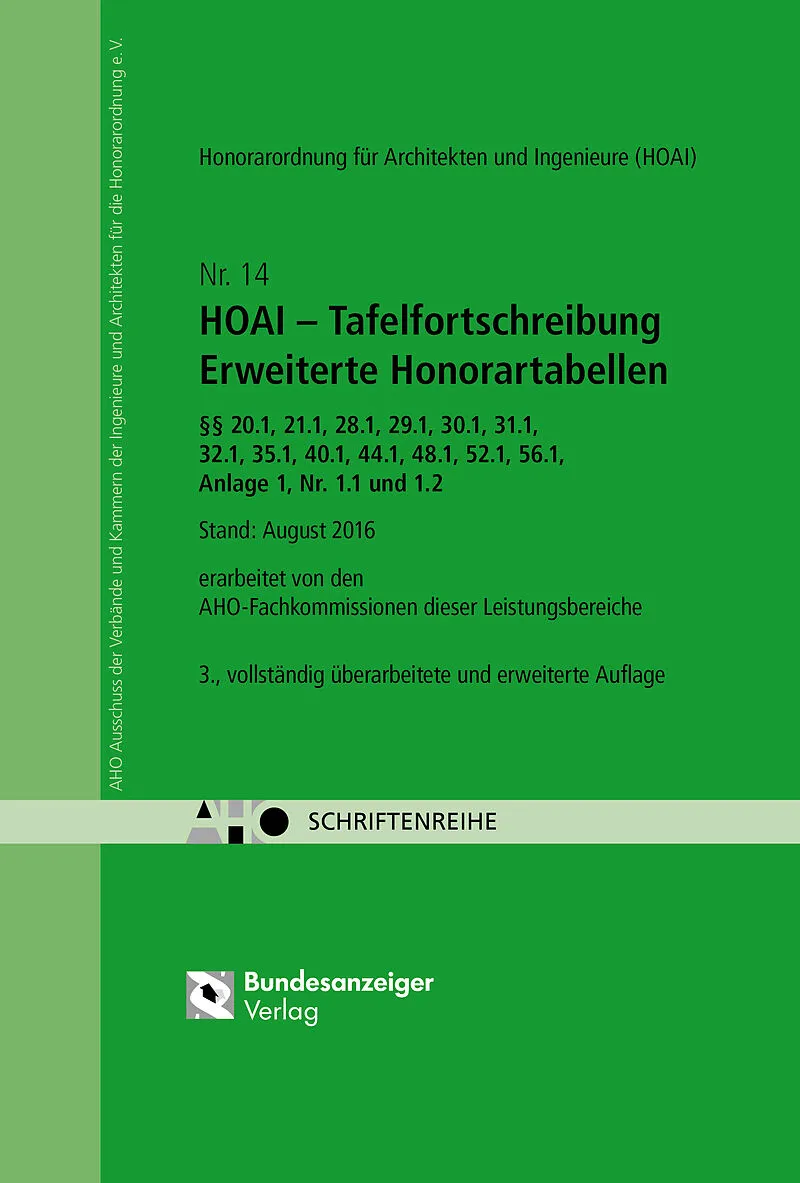 Stand: August 2016 AHO 14: Die verbindlichen, aber auch die empfohlenen Honorartafeln der einzelnen Leistungsbilder enden an einem vom Verordnungsgeber vorgegebenen Höchstwert. In der Praxis werden bei Großvorhaben diese Höchstgrenzen allerdings häufig übersch...