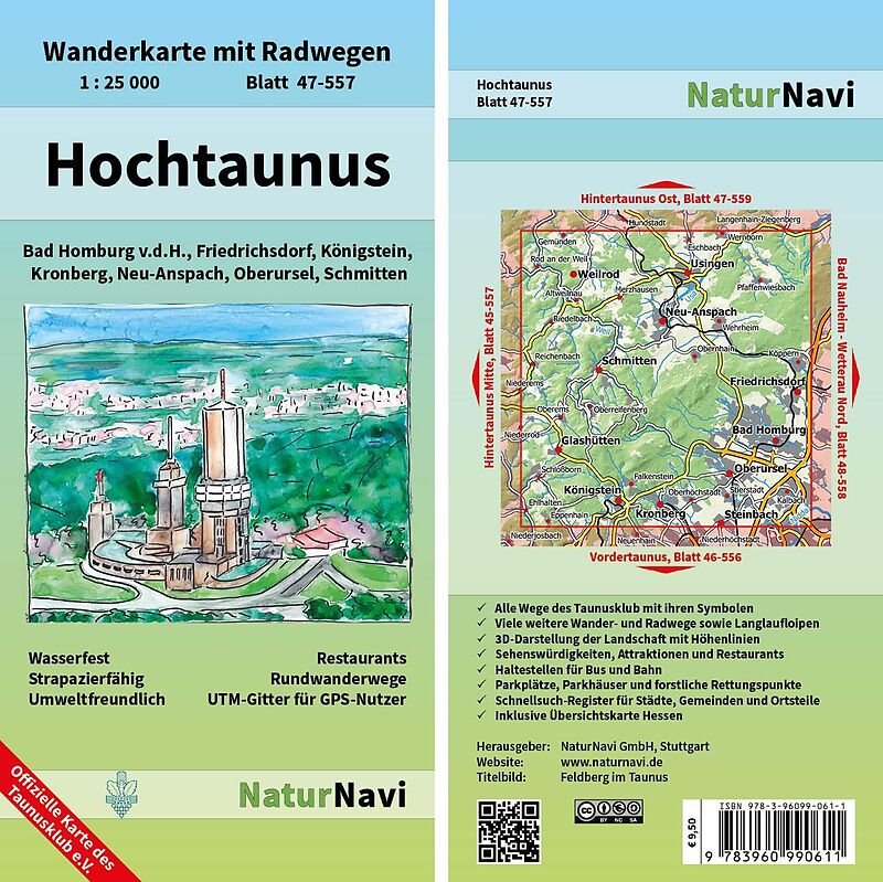 • Offizielle Karte des Taunusklub e.V. • Sehr genaue und aktuelle topografische Kartographie im Ideal-Maßstab 1 : 25 000 • Detaillierte Wander- und Radwege inkl. Rund- und Fernwege • 3D-Darstellung der Landschaft und Höhenlinien im 10 m Abs...