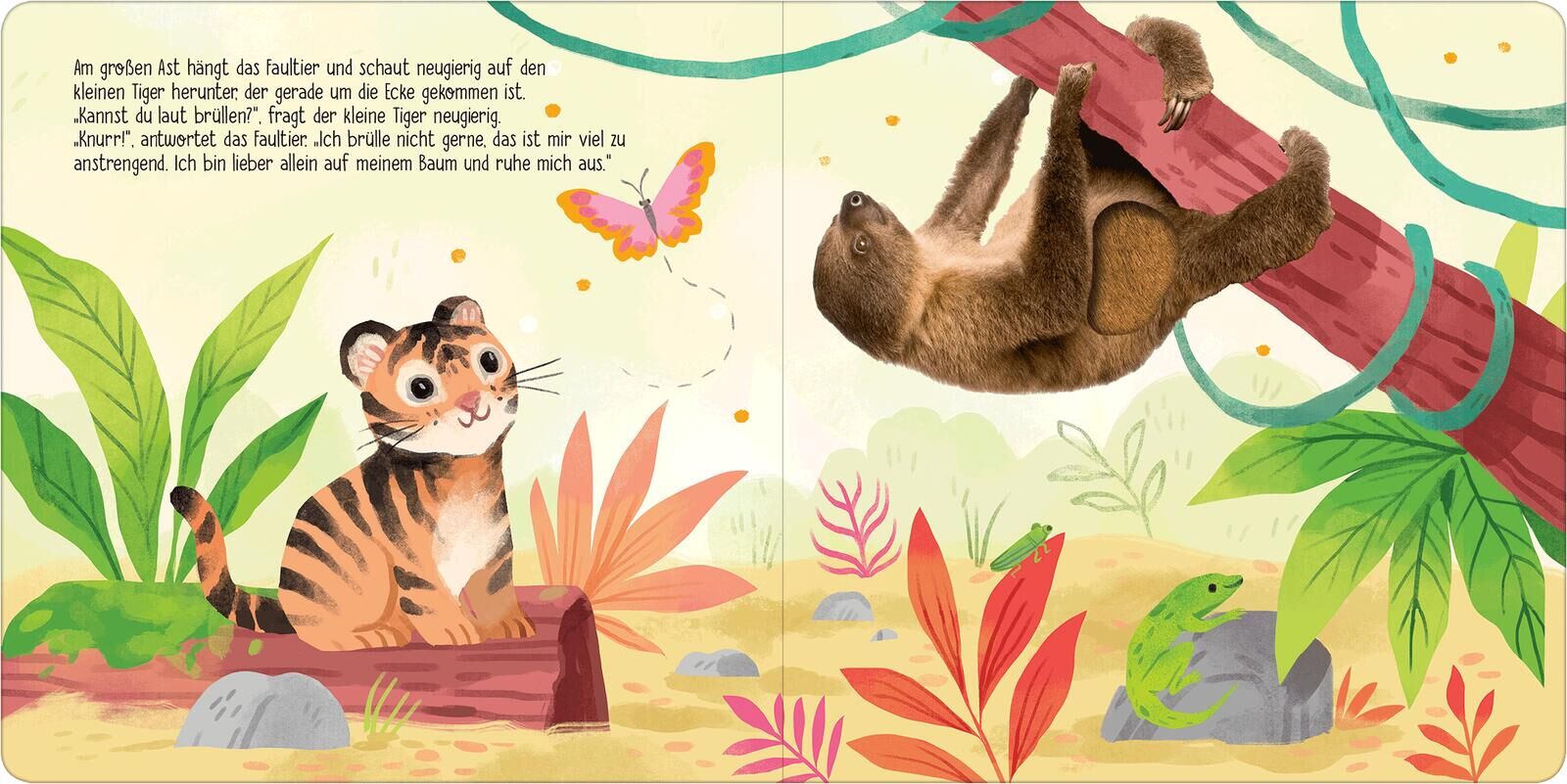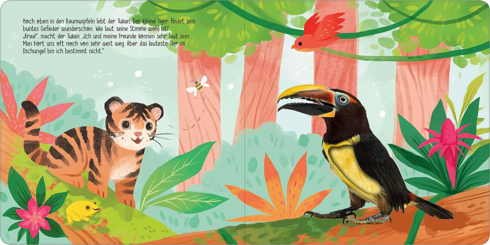 Meine erste Tiergeschichte mit Sound Roar, roar, macht der kleine Tiger. Das klingt schon ganz schön laut! Doch wer ist eigentlich das lauteste Tier im Dschungel? Der kleine Tiger macht sich auf den Weg durch den Regenwald, um es herauszufinden, und trifft da...