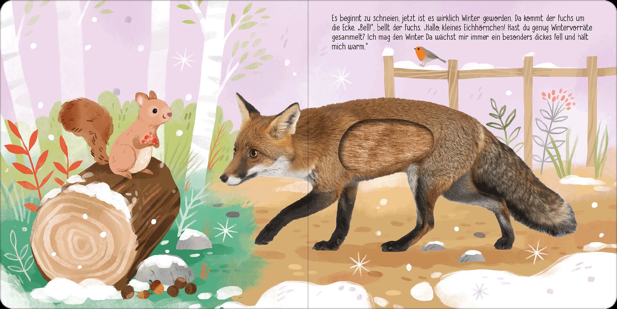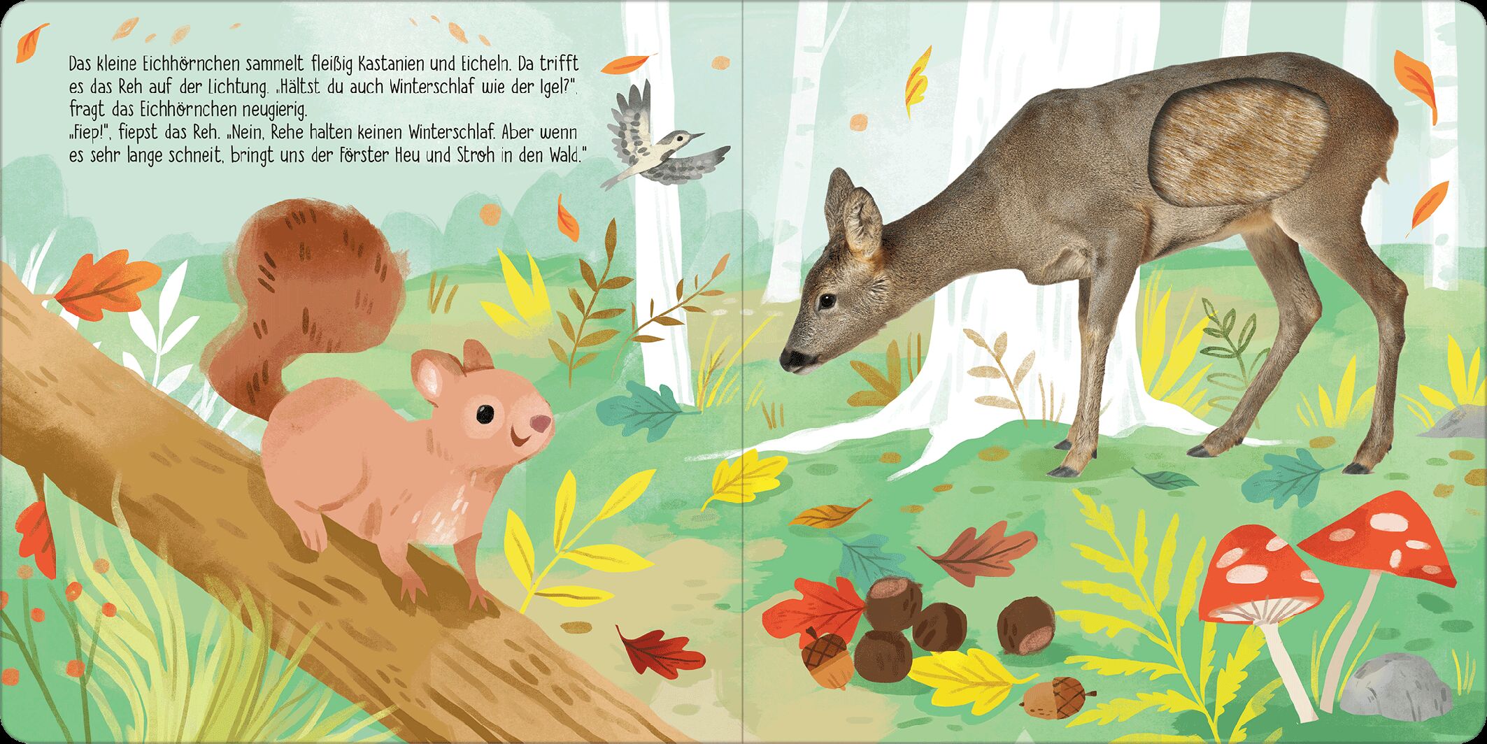 Hör mal, kleines Eichhörnchen! Meine erste Tiergeschichte mit Sound Kecker, kecker, macht das kleine Eichhörnchen. Es sammelt Nüsse und Eicheln für den nahenden Winter. Auf dem Weg durch den Herbstwald trifft es weitere Tiere, die erste Wintervorbereitungen tr...
