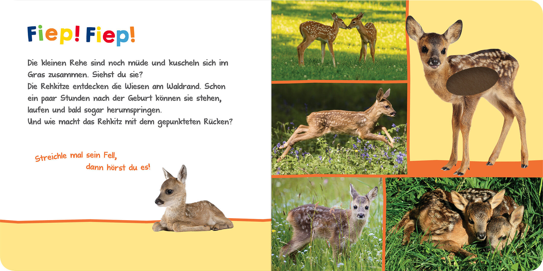 Hör mal rein, wer kann das sein? - Im Frühling Wie macht das Küken? Das Lämmchen macht määh, das Kaninchen mümmelt laut die Möhre und das Küken piepst im Nest. Doch wie klingen der Zaunkönig und das Rehkitz? Hier kannst du es entdecken. Einfach über das kusche...