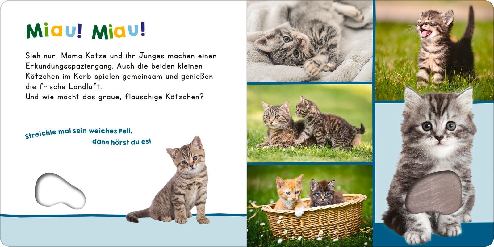 Hör mal rein - Meine ersten Tiere Hörst du das kleine Kätzchen? Das kleine, süße Katzenbaby miaut mit seinen Geschwistern um die Wette. Doch was für Geräusche machen Hundewelpe, Entenküken, Lamm und Eselfohlen? Hier kannst du sie entdecken. Einfach über das ku...