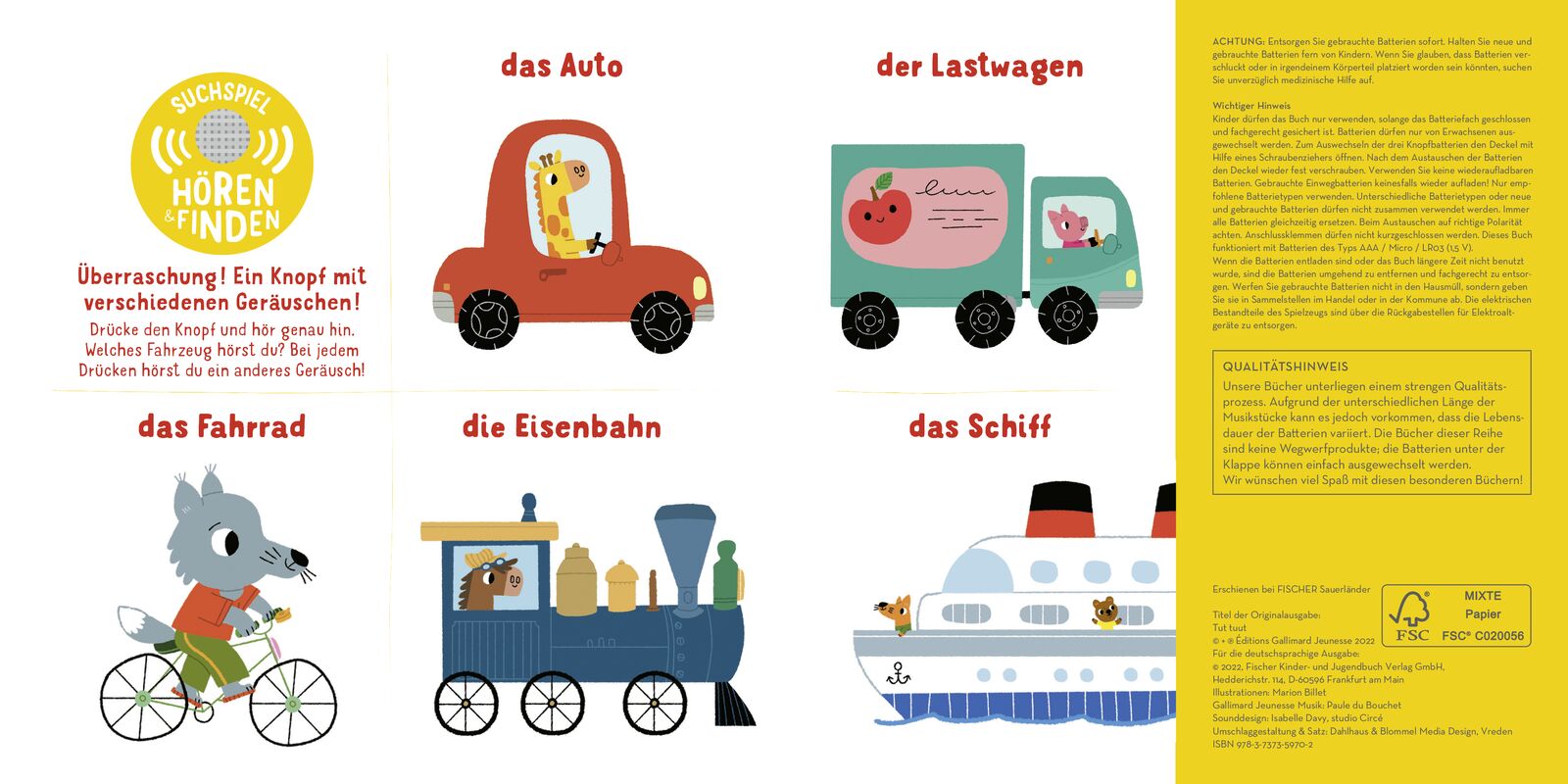 In diesem interaktiven Pappebuch für die Kleinen ist was los. Hier klingelt, hupt und brummt es. Die leuchtenden Bilder laden ein in die Welt der Fahrzeuge und werden mit einem passenden Geräusch untermalt. Durch einfaches Berühren können die Kinder die auf j...