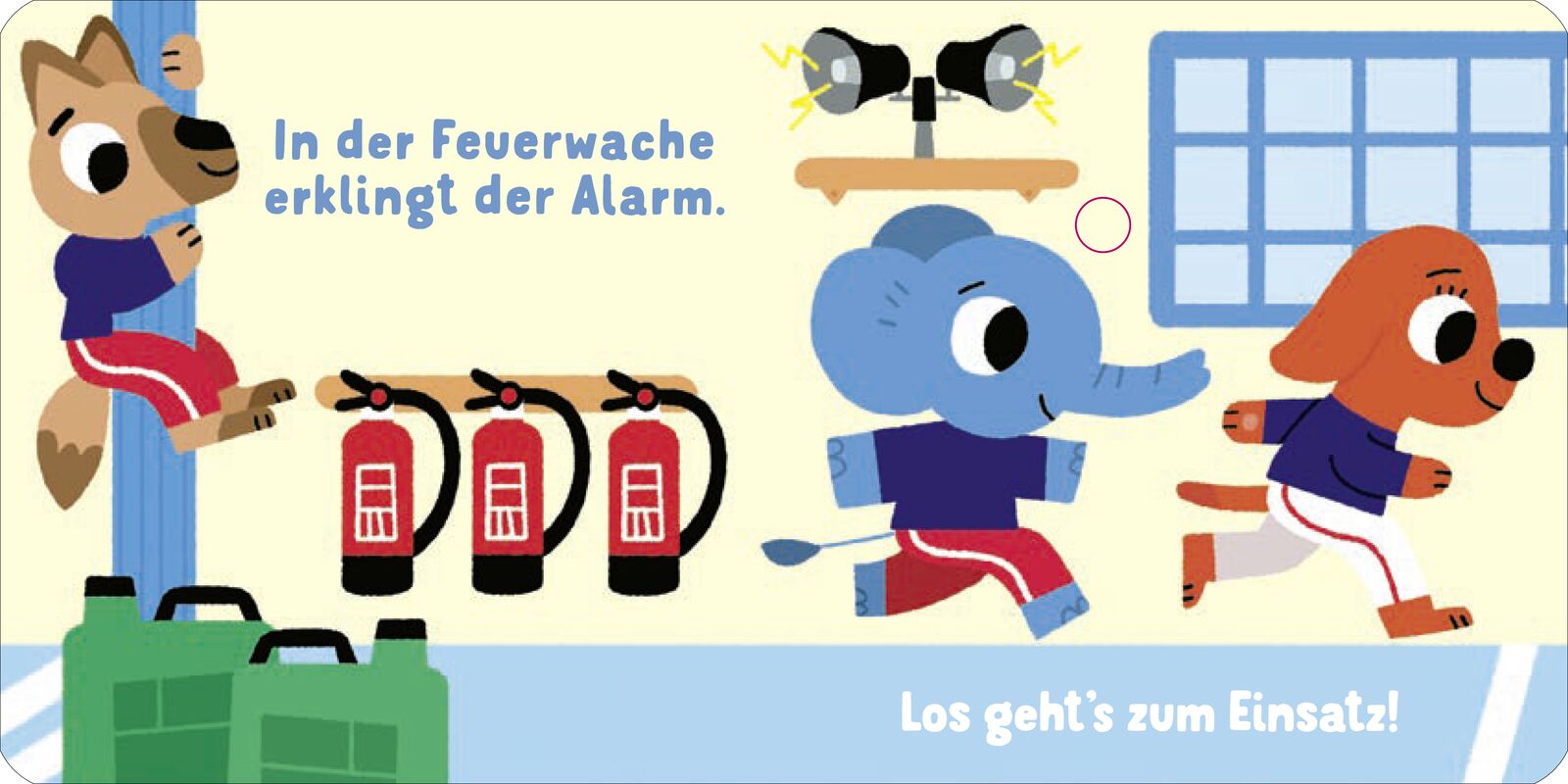 Tatütata, die Feuerwehr ist da! Feuerwehr - Pappbilderbuch mit tollen Geräuschen für Kinder ab 12 Monaten! Auf der Feuerwache ist etwas los! Und dieses Soundbuch zeigt die spannendsten Momente bei der Tier-Feuerwehr . Sofort sind Elefant, Bär und Fuchs zur St...