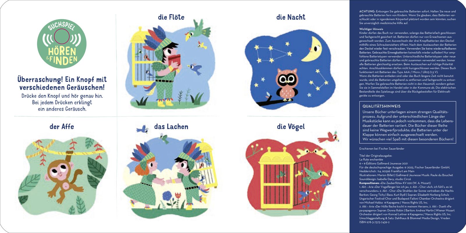 Opern-Hörspaß und Klassik-Soundbuch für Kinder ab 18 Monaten! Die Zauberflöte von Wolfgang Amadeus Mozart ist eine der beliebtesten Opern der Welt. Gerne wird sie auch für Kinder inszeniert. Mit diesem interaktiven Pappbilderbuch haben schon die Kleinsten ers...