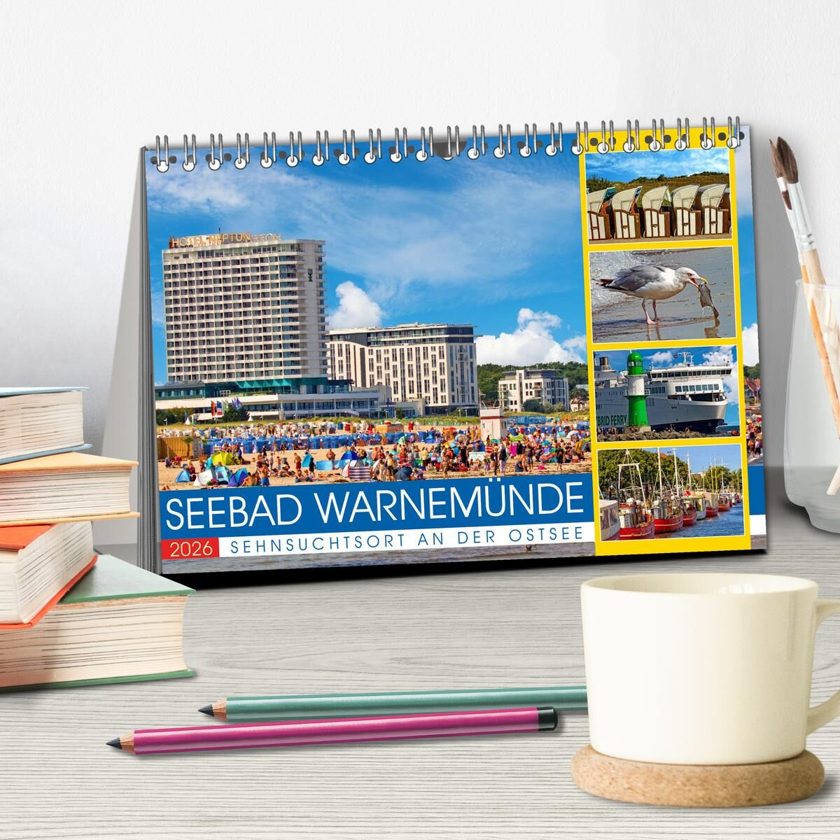 Seebad Warnemünde - Sehnsuchtsort an der Ostsee (Tischkalender 2026 DIN A5 quer), CALVENDO Monatskalender