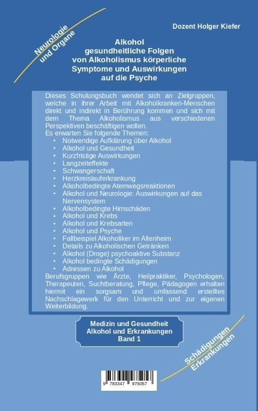 Dieses Schulungsbuch wendet sich an Zielgruppen, welche in ihrer Arbeit mit Alkoholkranken-Menschen direkt und indirekt in Berührung kommen und sich mit dem Thema Alkoholismus aus verschiedenen Perspektiven beschäftigen wollen. Es erwarten Sie folgende Themen:...