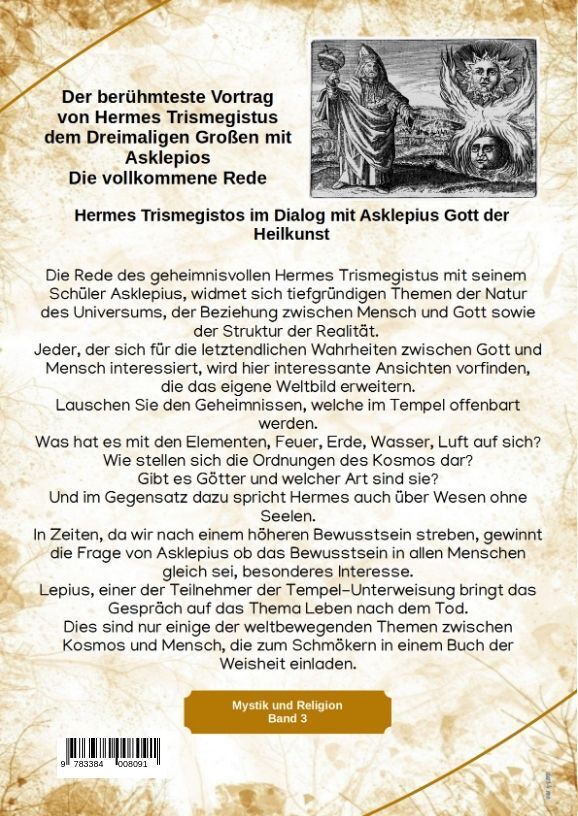 Der berühmteste Vortrag von Hermes Trismegistus dem Dreimaligen Großen mit Asklepios - Die vollkommene Rede - Begründer der Hermetischen Gesetze Kybalion