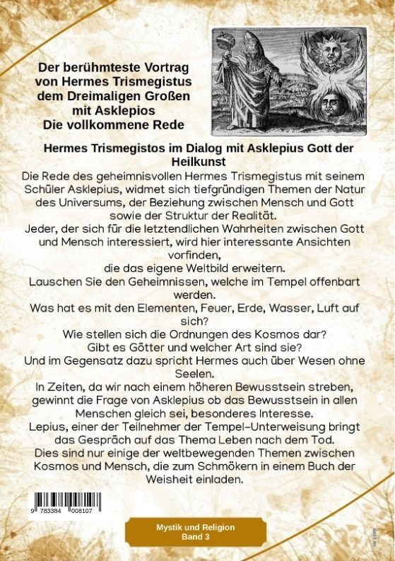 Dieses Buch entführt Sie in die Weisheiten vergangener Jahrhunderte. Es gibt verschiedene Schreibweisen für "Hermes Trismegistus", "Tris Megistas", "Thrice Great", Trismégistos der dreimal größte Hermes". Begleiten Sie die faszinierende Tempelrede der Götterge...
