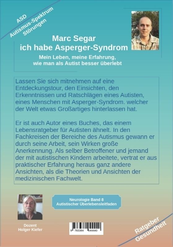 "Marc Segar ich habe Asperger-Syndrom - Mein Leben, meine Erfahrung, wie man als Autist besser überlebt" Lassen Sie sich mitnehmen auf eine Entdeckungstour, den Einsichten, den Erkenntnissen und Ratschlägen eines Autisten, eines Menschen mit Asperger-Syndrom, ...