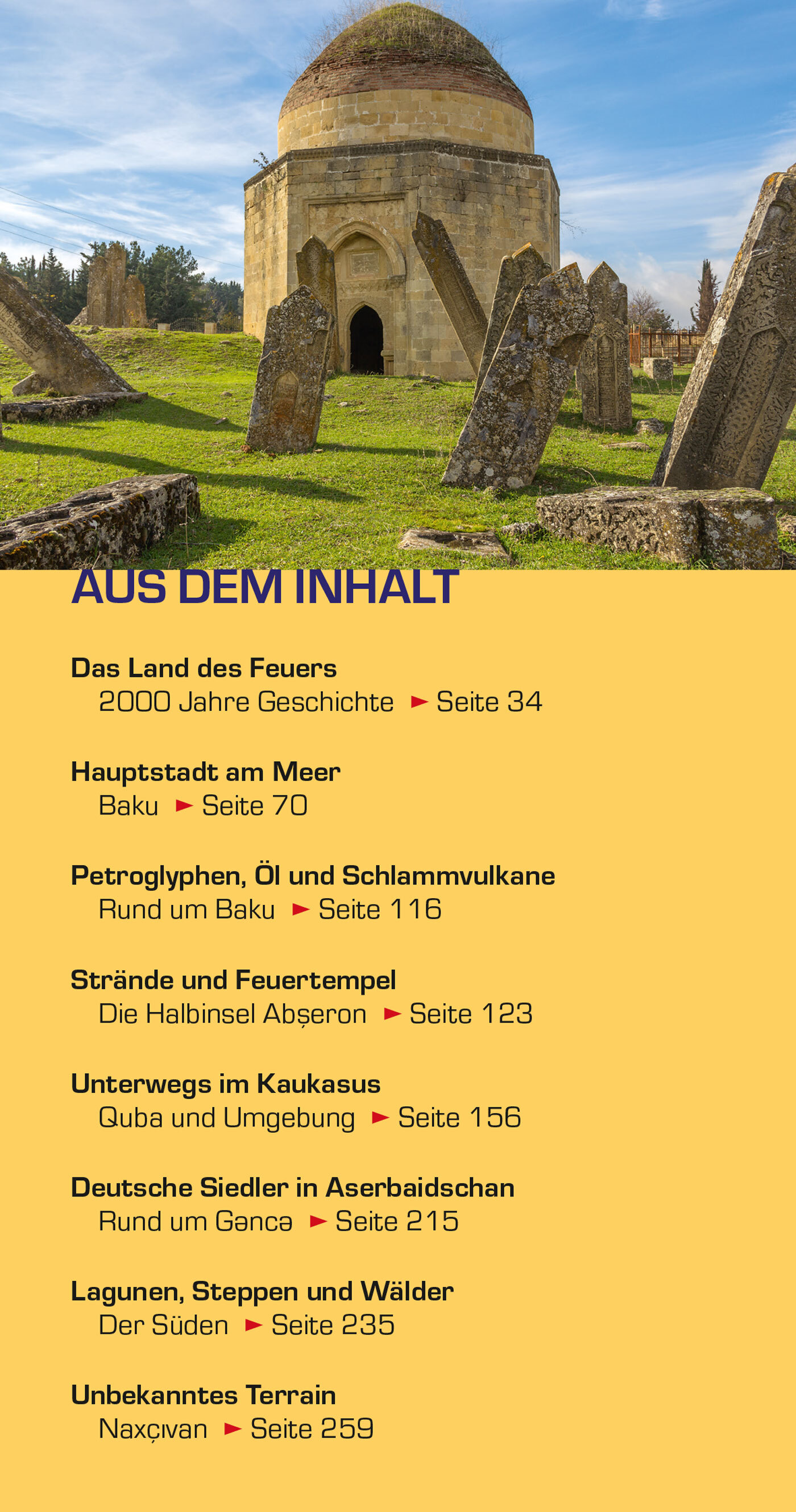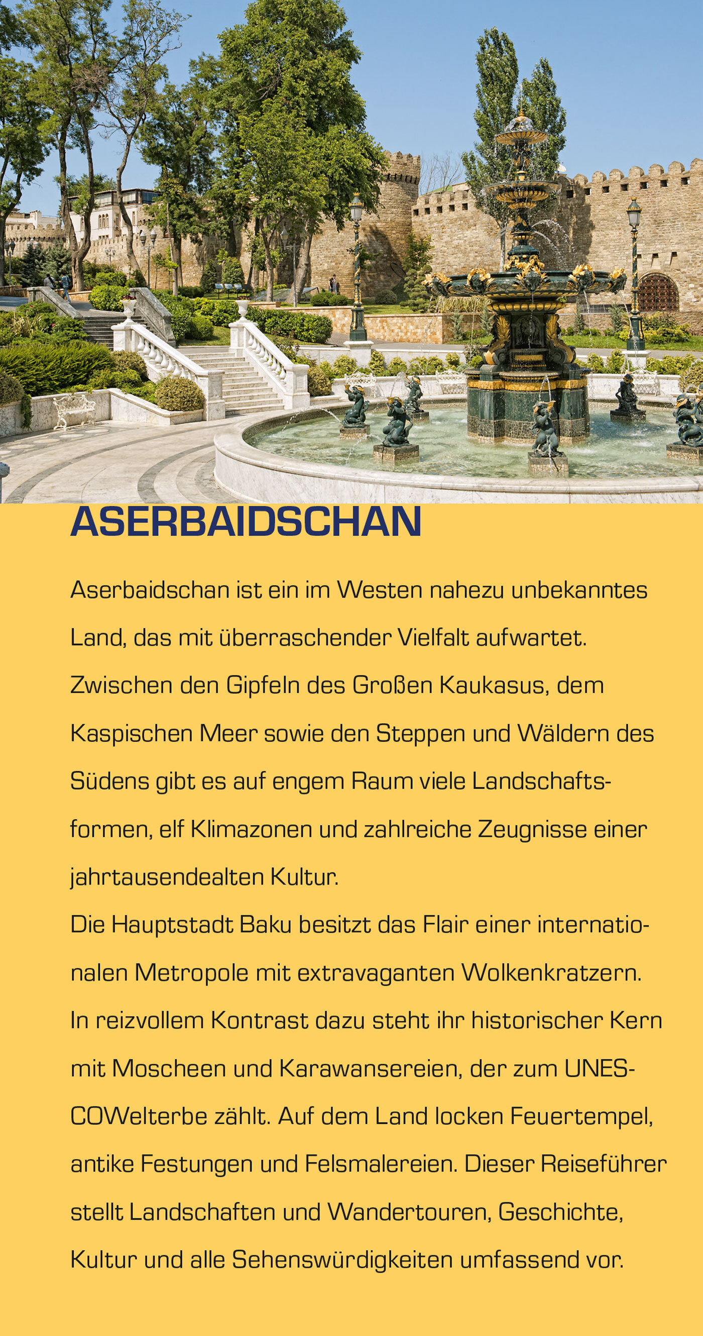 • Alle Regionen und Sehenswürdigkeiten Aserbaidschans auf 348 Seiten - Fundierte Einführung zu Geschichte, Kultur, Religionen und Brauchtum - Empfehlungen zu Unterkünften, Restaurants, Einkaufsmöglichkeiten, Museen - Extra-Kapitel zu den schönsten Wandertouren...