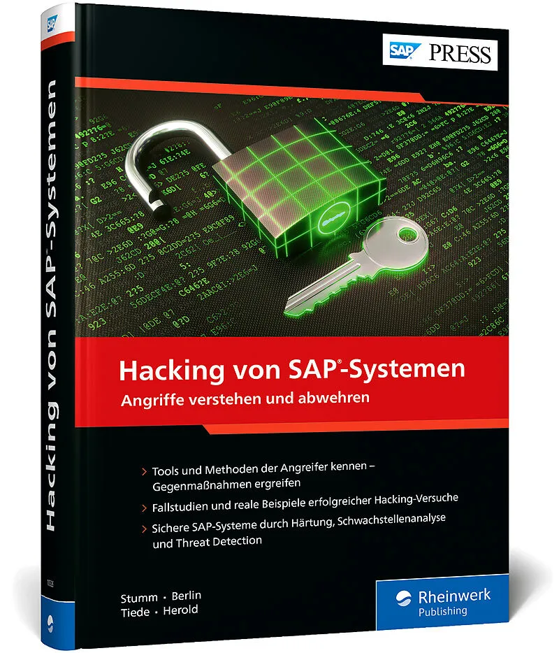 Sicherheitslücken im SAP-System erkennen und behebenSchützen Sie Ihre SAP-Systeme vor Hacking-Angriffen! Dieses Buch zeigt Ihnen, mit welchen Tools und Methoden Hacker vorgehen und wie Sie Schwachstellen erkennen und beheben. Anhand von Fallstudien und praktis...Sicherheitslücken im SAP-System erkennen und behebenSchützen Sie Ihre SAP-Systeme vor Hacking-Angriffen! Dieses Buch zeigt Ihnen, mit welchen Tools und Methoden Hacker vorgehen und wie Sie Schwachstellen erkennen und beheben. Anhand von Fallstudien und praktischen Beispielen lernen Sie typische Angriffsszenarien kennen auf Netzwerk, Passwörter und RFC-Schnittstellen bis hin zu ABAP-Code, SAP HANA und Cloud-Anwendungen. Erfahren Sie, wie Sie Ihre Systeme durch Härtung, Schwachstellenanalyse und Threat Detection absichern.Tools und Methoden der Angreifer kennen Gegenmaßnahmen ergreifenFallstudien und reale Beispiele erfolgreicher Hacking-VersucheSichere SAP-Systeme durch Härtung, Schwachstellenanalyse und Threat DetectionAus dem Inhalt:Aktuelle Bedrohungen SAP-SicherheitswerkzeugeHacker-WerkzeugeAngriffe auf Netzwerke Passwort-HackingRFC-SicherheitSchutz von ABAP-CodeAngriffe auf SAP HANAAbsicherung der CloudBerechtigungsbasierte PenetrationstestsMobile Anwendungen sichernForensik und Reaktion