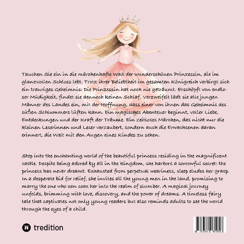 Das Buch erzählt die Geschichte einer wunderschönen Prinzessin, die in einem Schloss lebt. Obwohl sie von allen im Land gemocht wird, ist sie oft traurig, weil sie noch nie geträumt hat. Die Prinzessin ist unendlich müde, kann aber einfach nicht einschlafen. I...