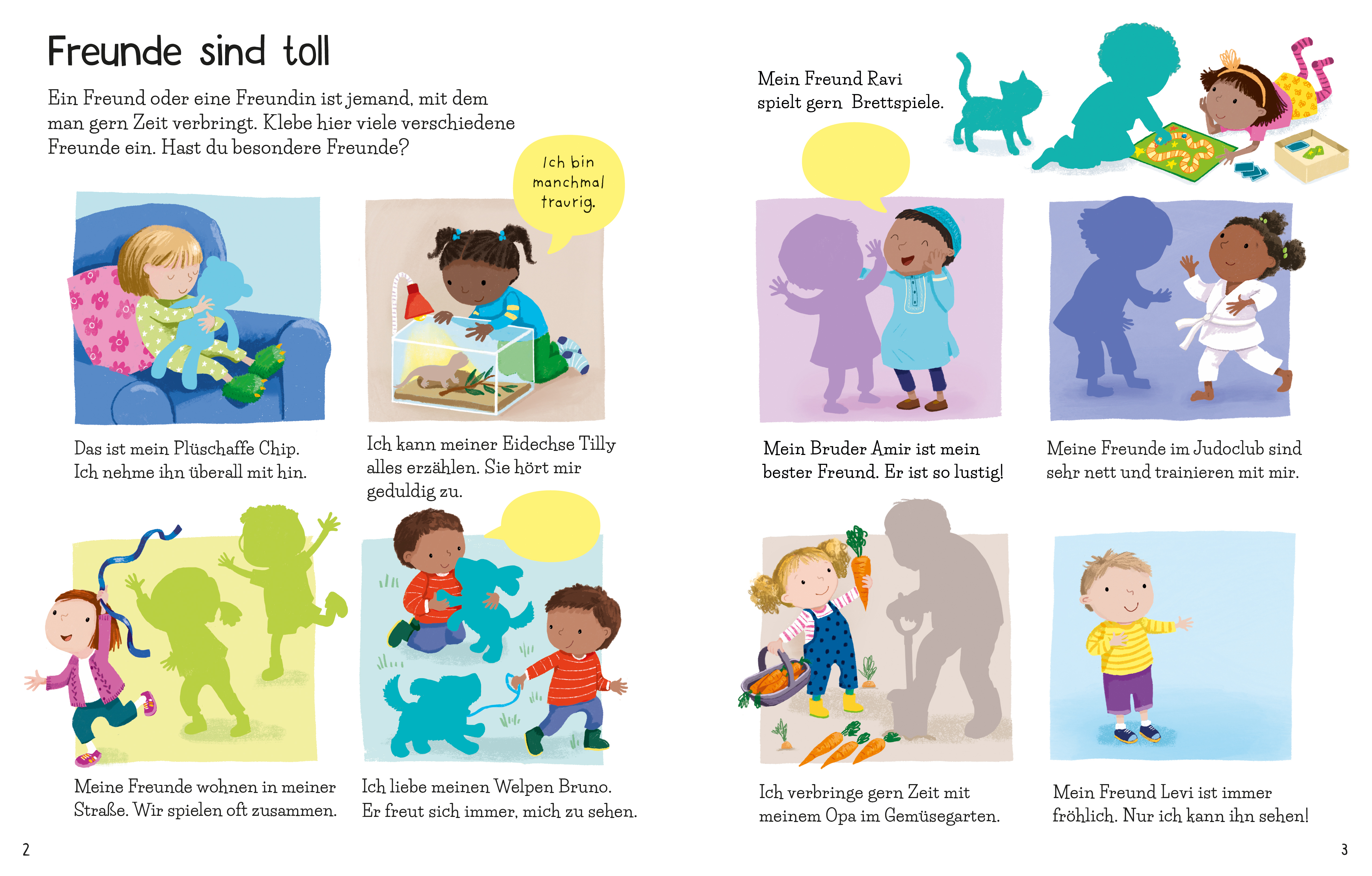 Gestalte die Szenen in diesem Buch mit über 150 bunten Stickern und entdecke, was man alles mit Freunden erleben kann. Ob im Park, in der Schule oder zu Hause zusammen macht fast alles mehr Spaß!