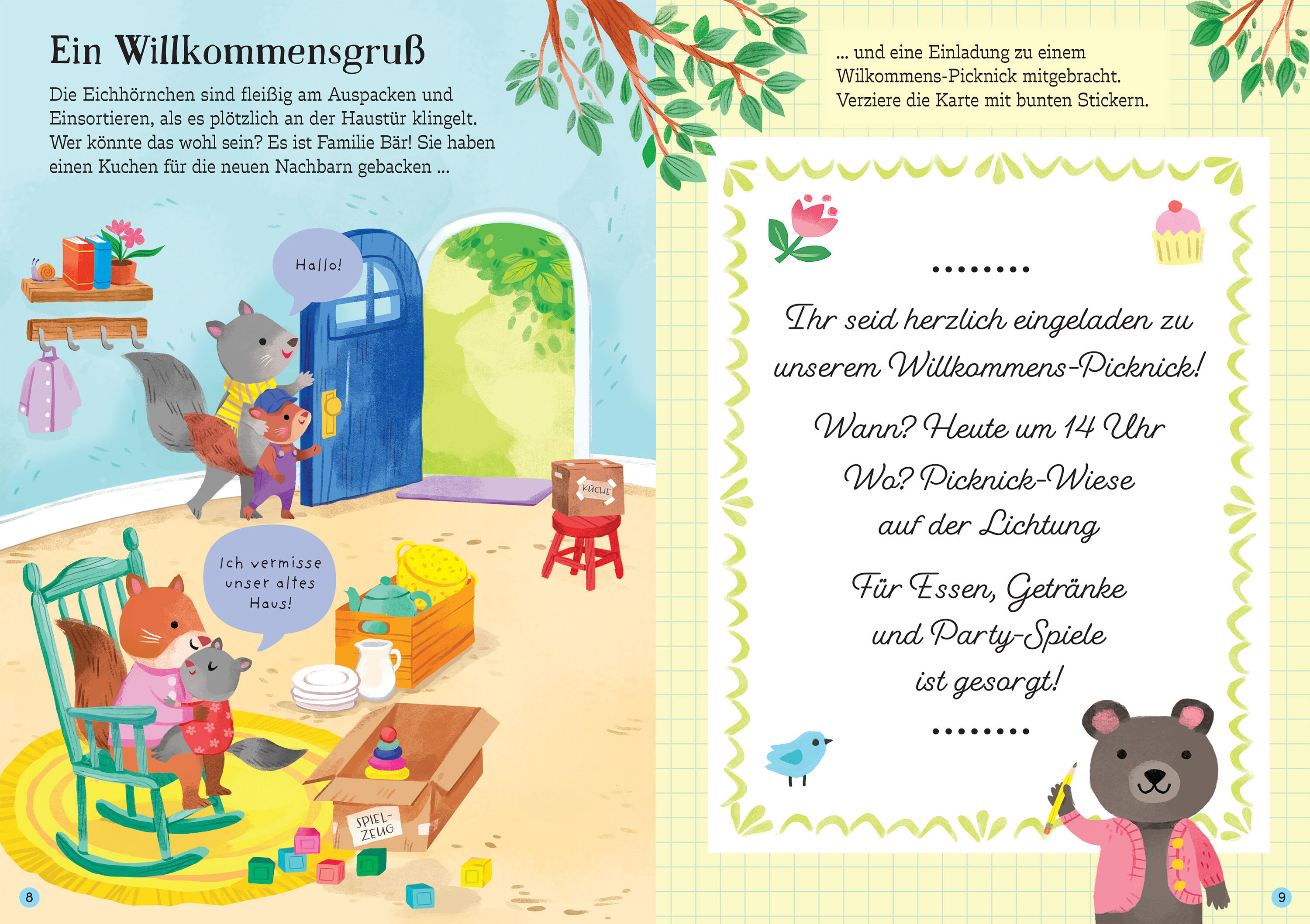 Familie Eichhorn ist umgezogen. Schnell werden sie von ihren netten Nachbarn willkommen geheißen und zu einem Kennenlern-Picknick eingeladen. Mit den über 170 wiederablösbaren Stickern kannst du der Familie dabei helfen, das neue Haus gemütlich einzurichten un...