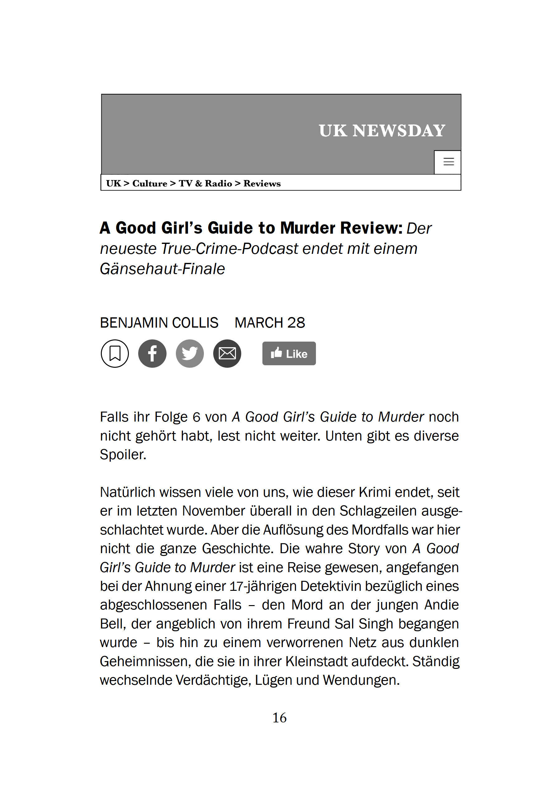 Seit sie den Mordfall an Andie Bell aufgeklärt hat, ist Pip geradezu berühmt. Vom Ermitteln hat sie trotzdem erst mal genug - lieber erzählt sie in einem True-Crime-Podcast mehr darüber, wie sie geholfen hat, den wahren Mörder Andies zu finden. Doch dann erfä...
