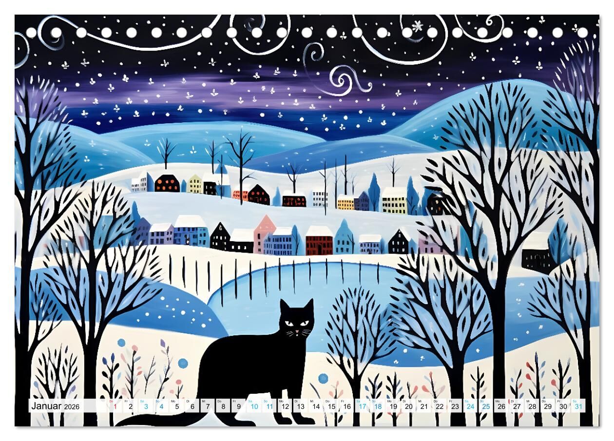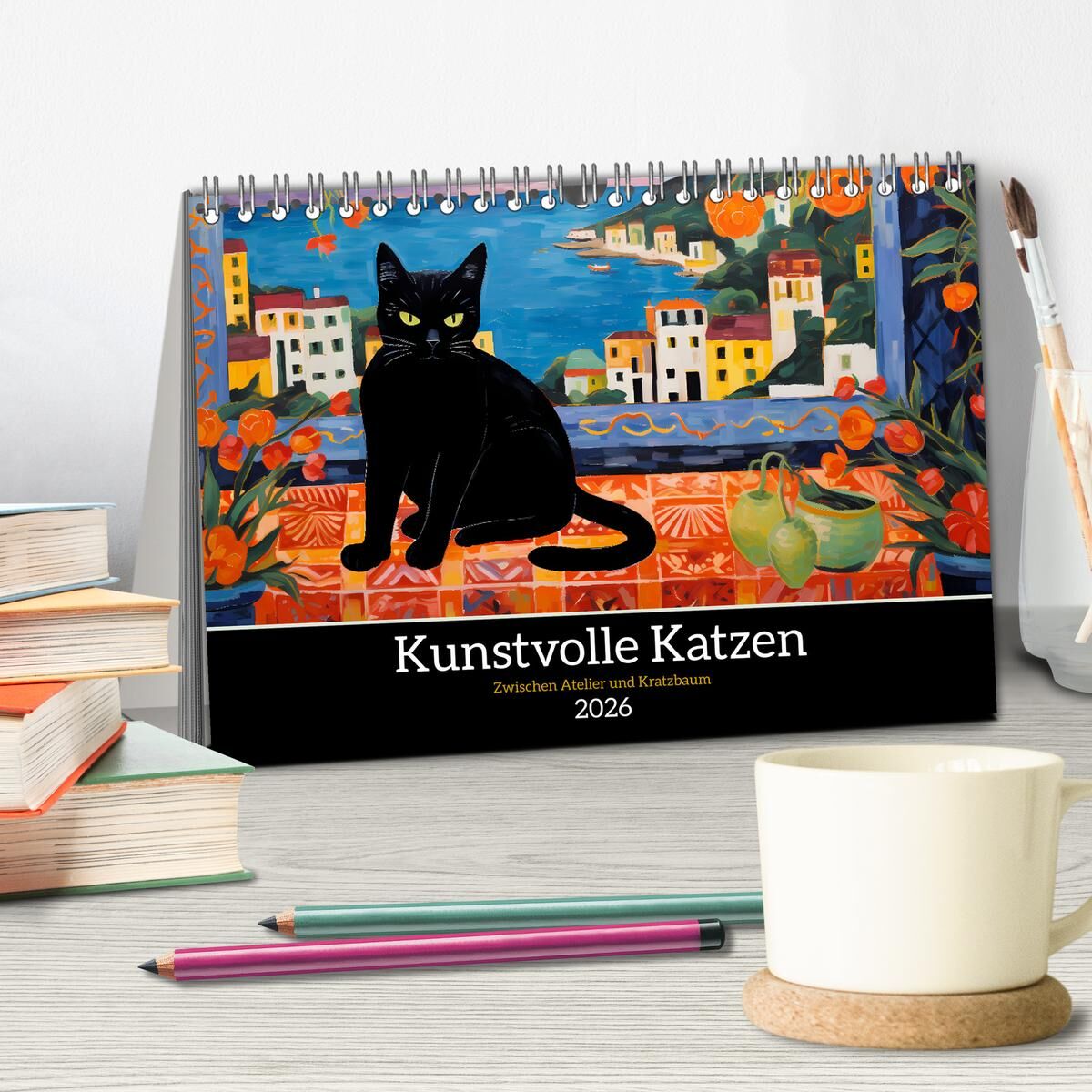 Kunstvolle Katzen (Tischkalender 2026 DIN A5 quer), CALVENDO Monatskalender