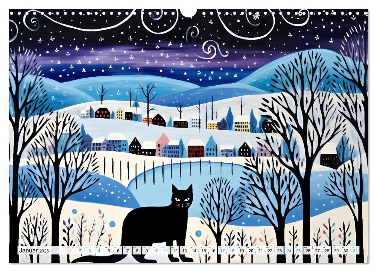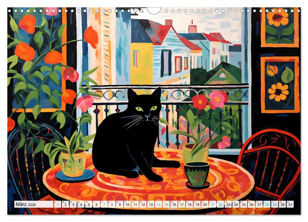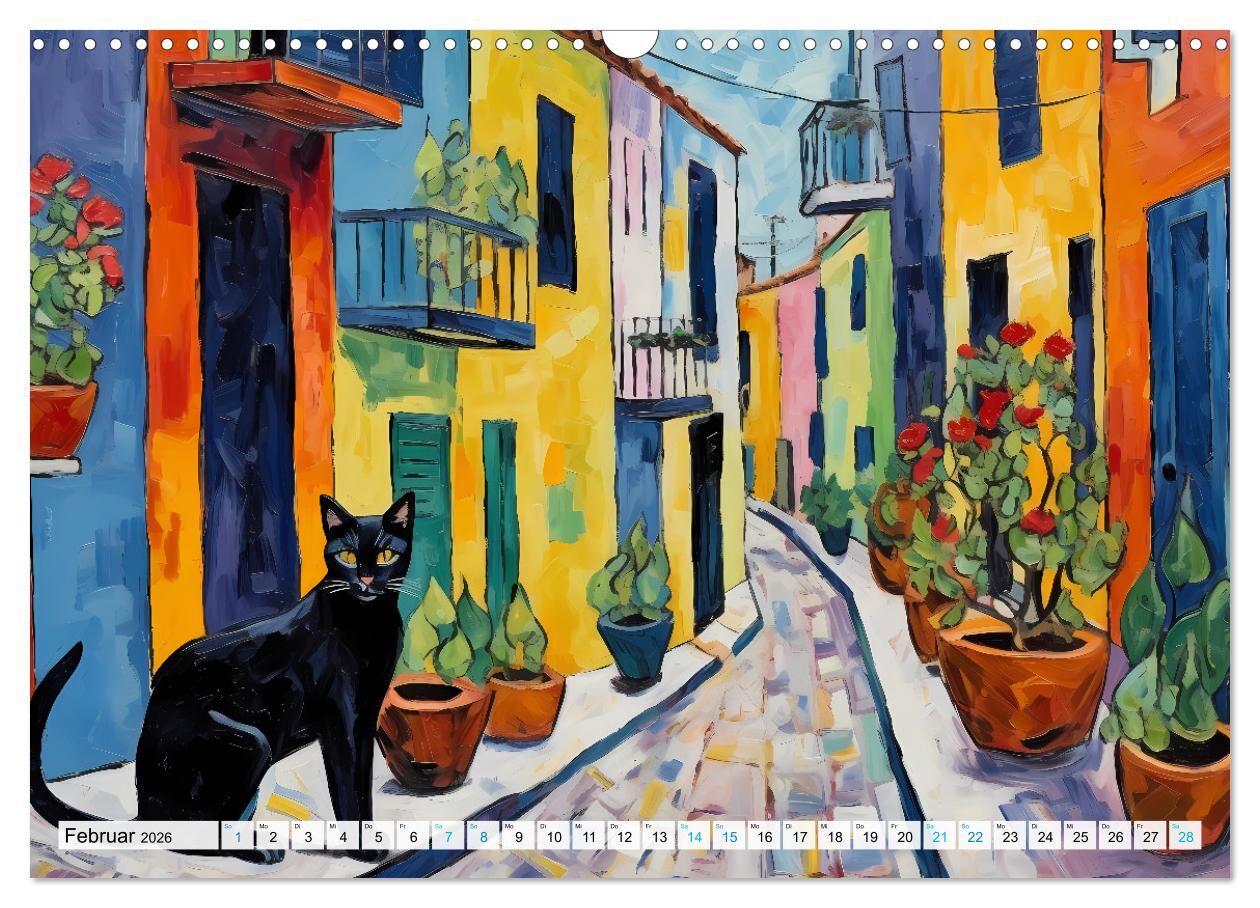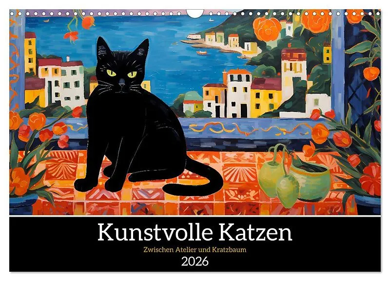 Kunstvolle Katzen (Wandkalender 2026 DIN A3 quer), CALVENDO Monatskalender