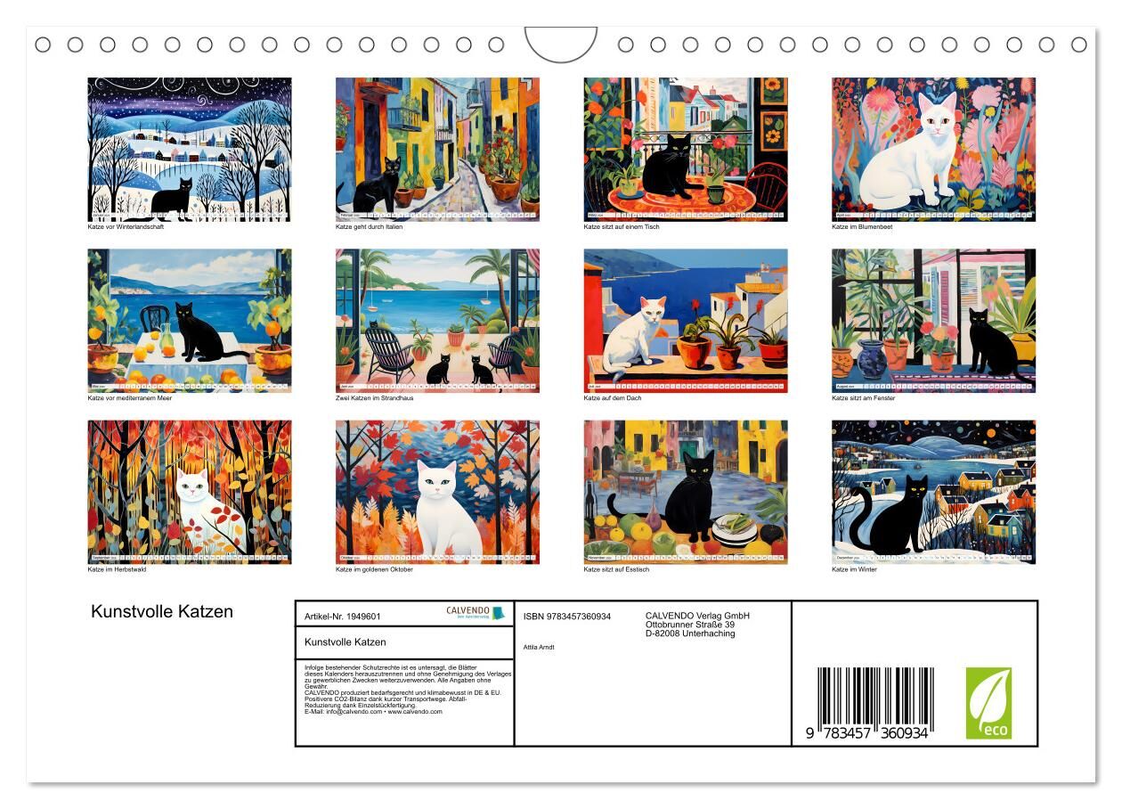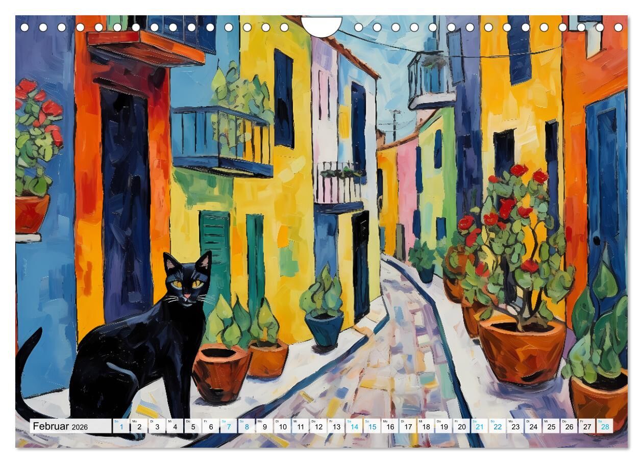 Kunstvolle Katzen (Wandkalender 2026 DIN A4 quer), CALVENDO Monatskalender