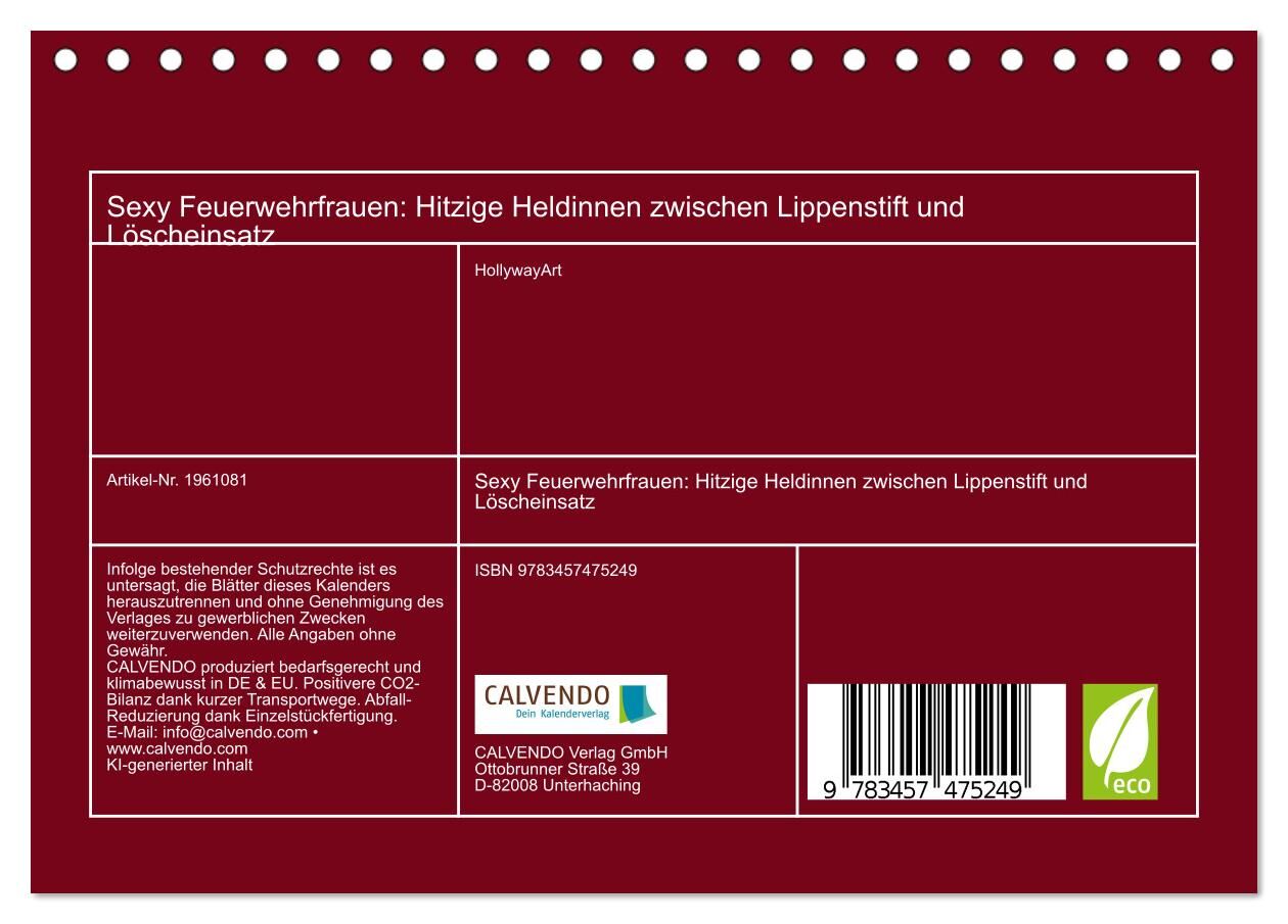 Der Kalender 'Sexy Feuerwehrfrauen: Hitzige Heldinnen zwischen Lippenstift und Löscheinsatz' bietet eine eindrucksvolle Sammlung von Bildern, die das Engagement und die Stärke von Feuerwehrfrauen in den Vordergrund stellen Die Kulissen reichen dabei von der Fe...