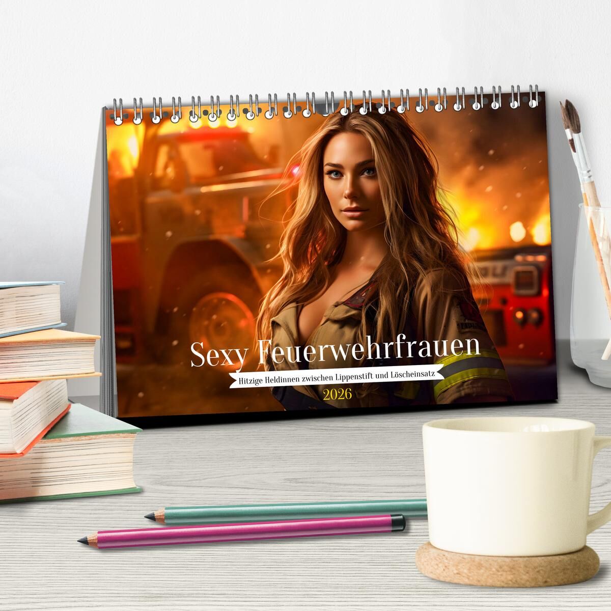 Sexy Feuerwehrfrauen: Hitzige Heldinnen zwischen Lippenstift und Löscheinsatz (Tischkalender 2026 DIN A5 quer), CALVENDO Monatskalender