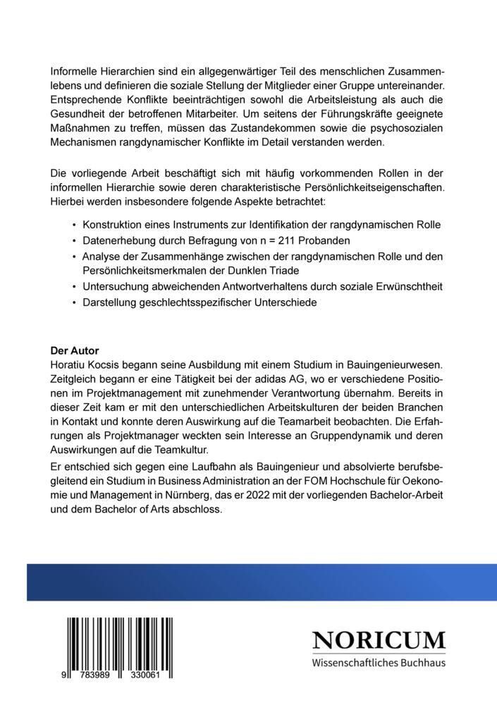 Informelle Hierarchien sind allgegenwärtiger Teil des menschlichen Zusammen-lebens und definieren die soziale Stellung der Mitglieder einer Gruppe unterein-ander. Entsprechende Konflikte beeinträchtigen sowohl die Arbeitsleistung als auch die Gesundheit der b...
