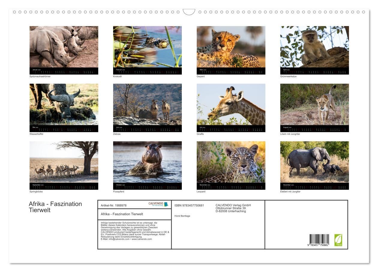 Afrika - Faszination Tierwelt (Wandkalender 2026 DIN A2 quer), CALVENDO Monatskalender