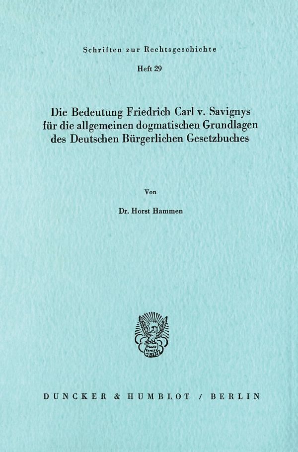 Die Bedeutung Friedrich Carl v. Savignys für die allgemeinen dogmatischen Grundlagen des Deutschen Bürgerlichen Gesetzbuches.
