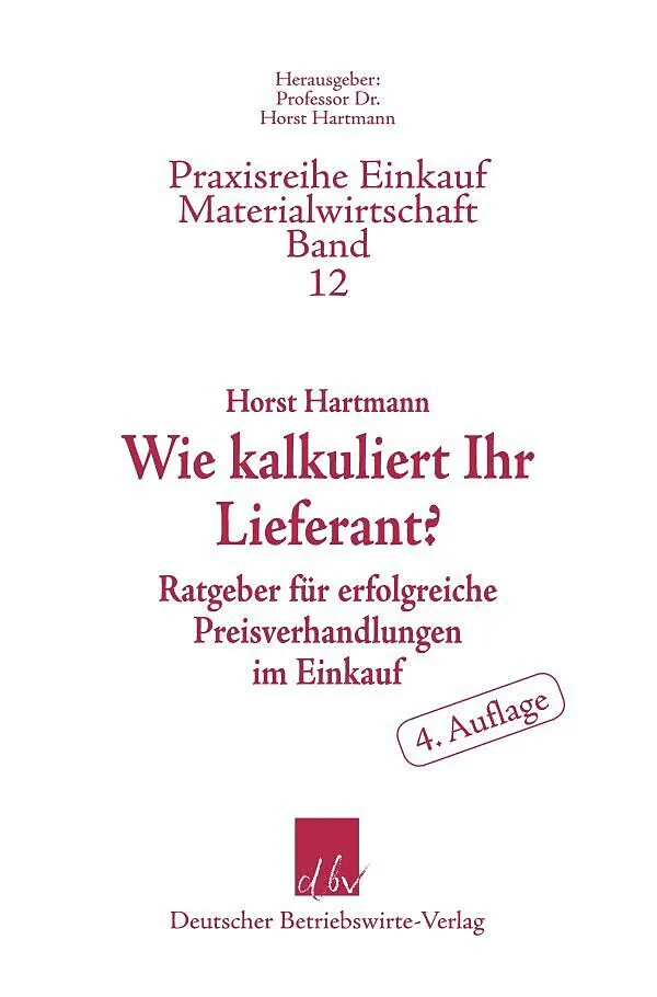 Die in der vorliegenden 4. Auflage wesentlich erweiterten Ausführungen und Beispiele verdeutlichen, dass der Einkauf einen entscheidenden Wertbeitrag zum Unternehmensergebnis leisten kann. Wesentliche Voraussetzung dafür ist, dass Preisverhandlungen auf der Gr...
