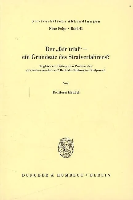 Der "fair trial" - ein Grundsatz des Strafverfahrens?