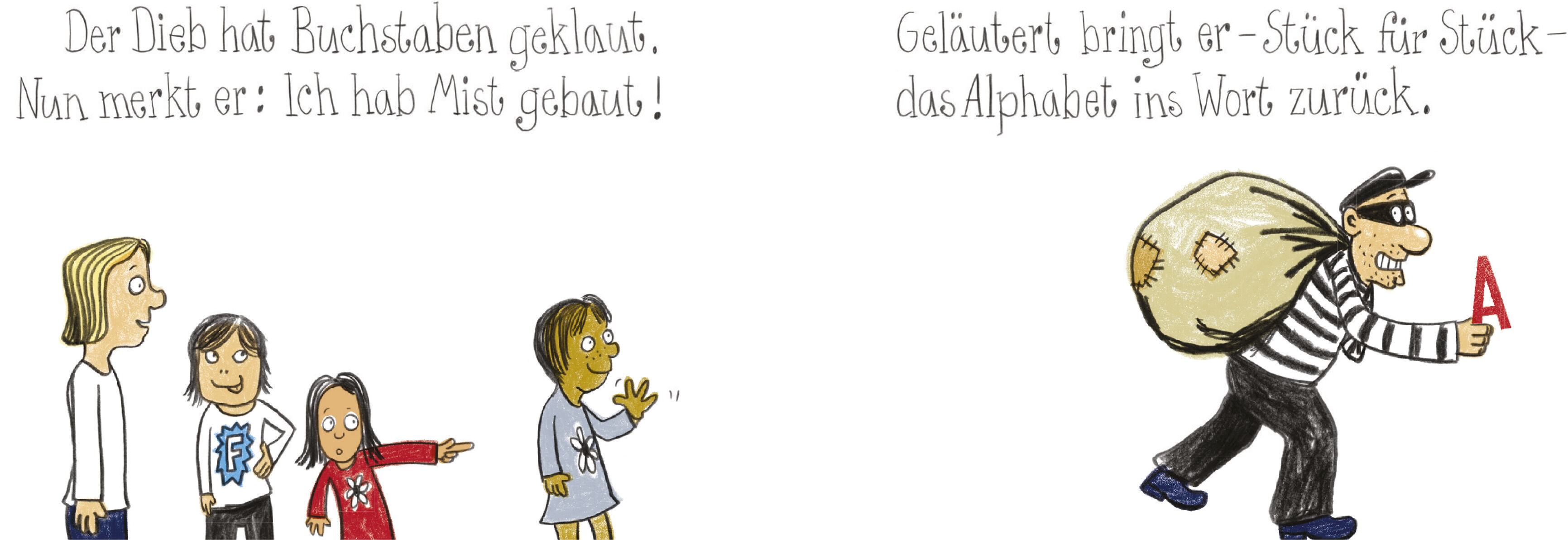 Hände horch und Waffel weg der Buchstabendieb ist zurück. (Noch) ein verboten witziges ABC-Buch! Achtung, der Buchstabendieb geht wieder um! Kennzeichen: Bringt geklaute Buchstaben zurück und stiftet jede Menge Wörterchaos. Gesucht: Komplizen zum Mitraten und ...