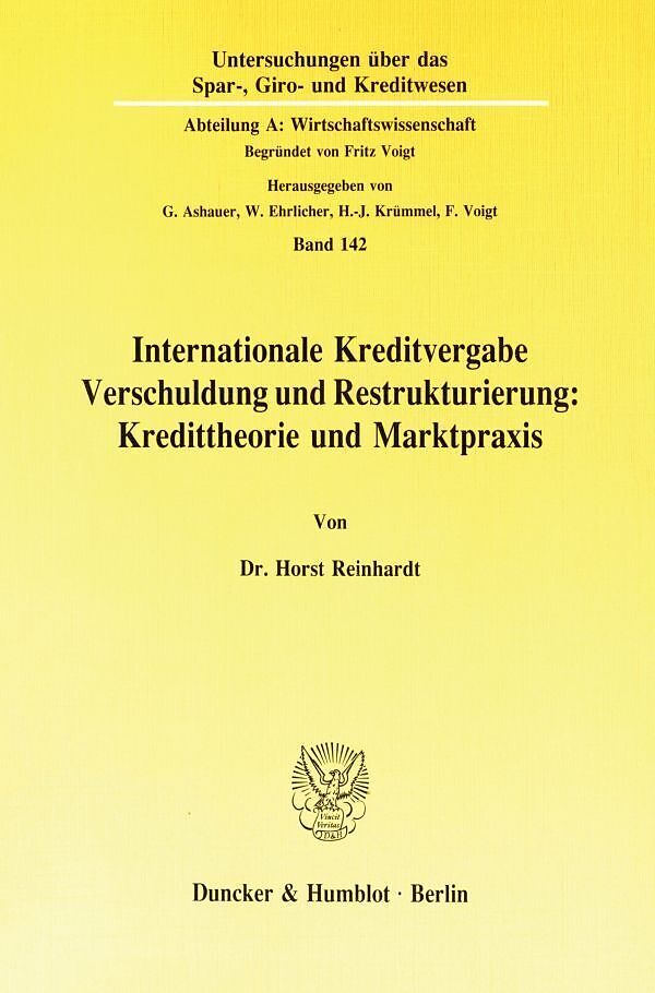 Internationale Kreditvergabe, Verschuldung und Restrukturierung: Kredittheorie und Marktpraxis.