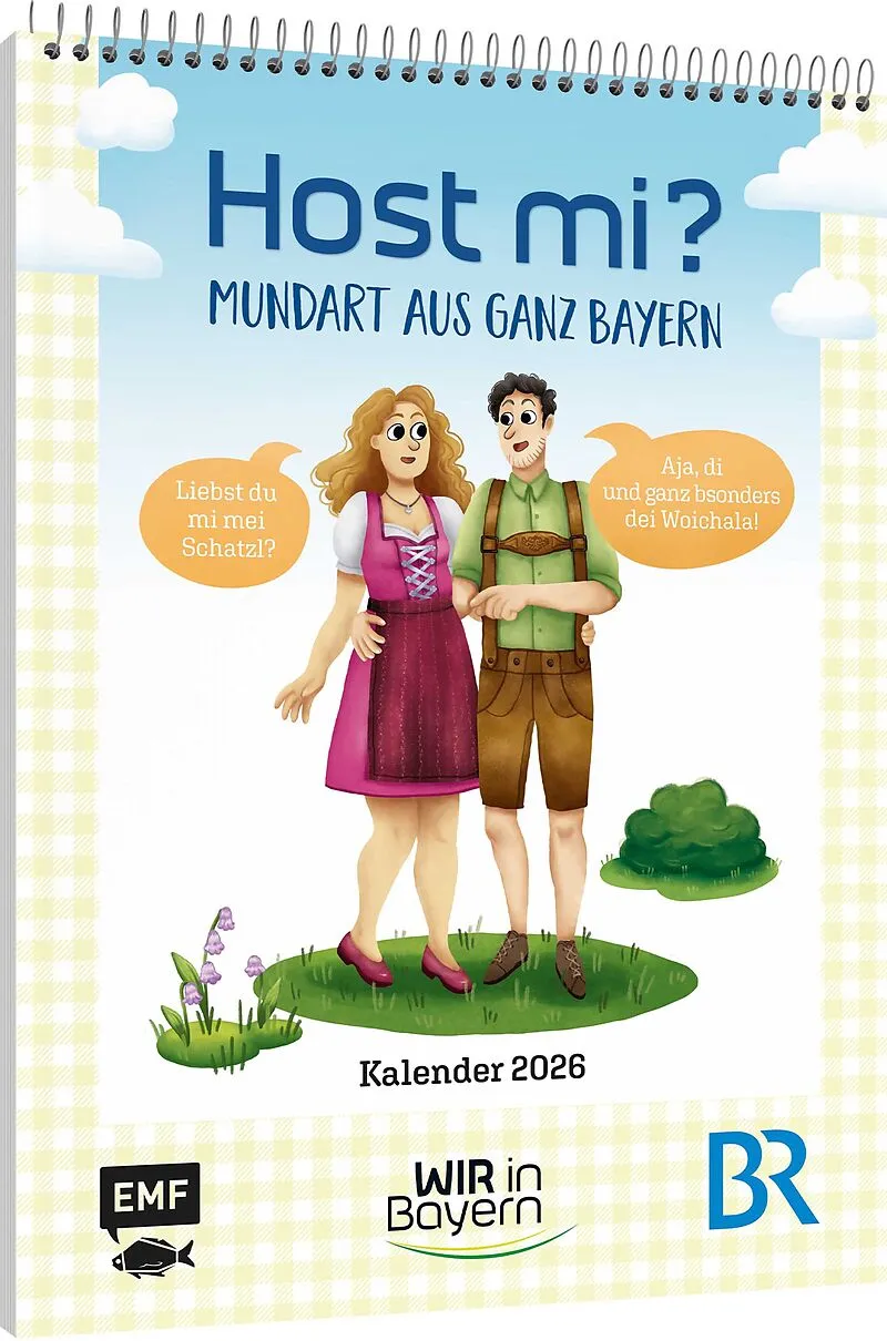 Da schau her! Der " Host mi? "- Wandkalender für 2026 mit den beliebtesten Dialekt-Schmankerln aus der BR-Sendung WIR IN BAYERN Geh, des gibt's doch ned! Dieser 2-Wochen-Kalender vereint die besten Mundart-Sprüche und -Begriffe, bekannt aus dem BR-Magazin Wir...