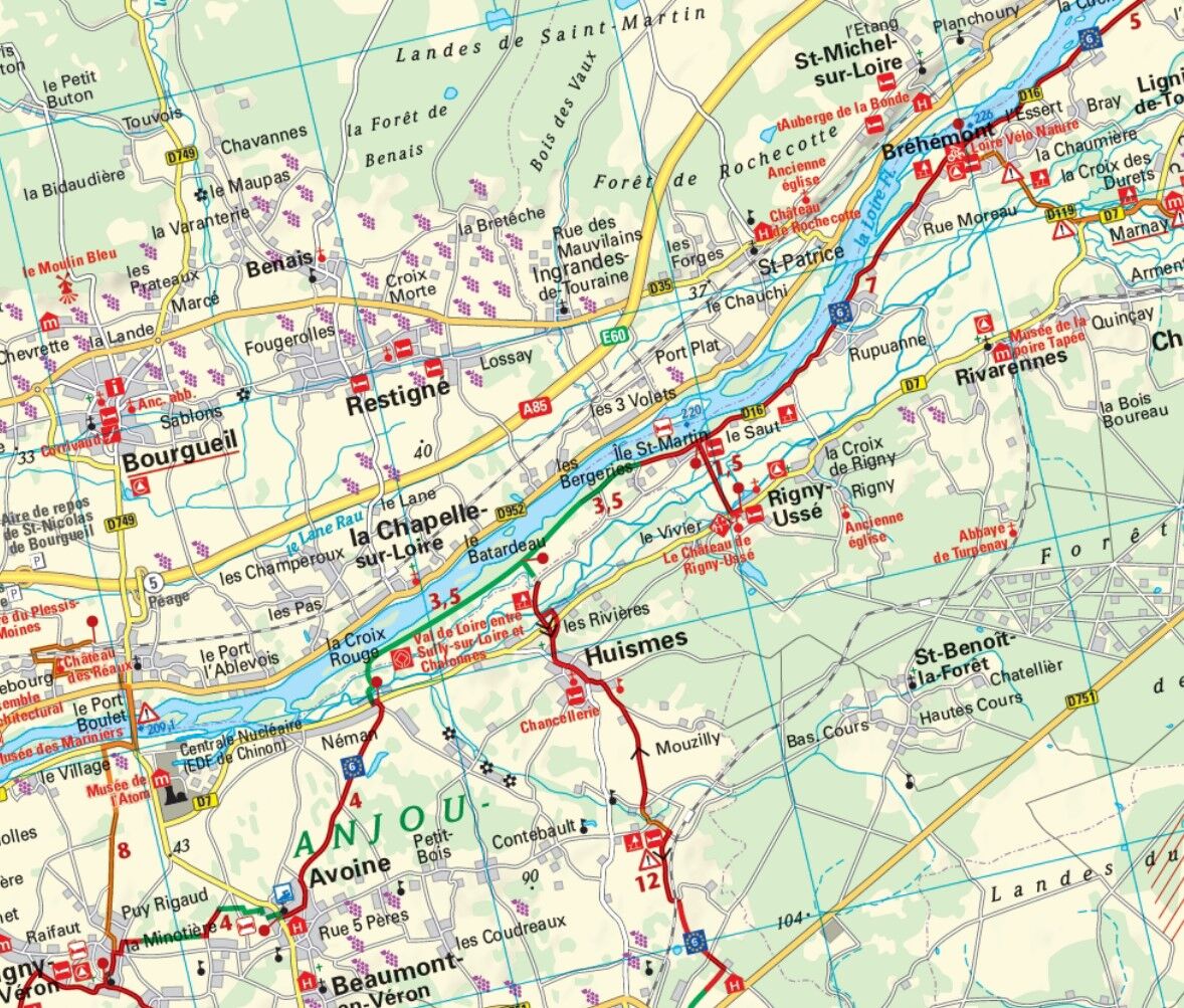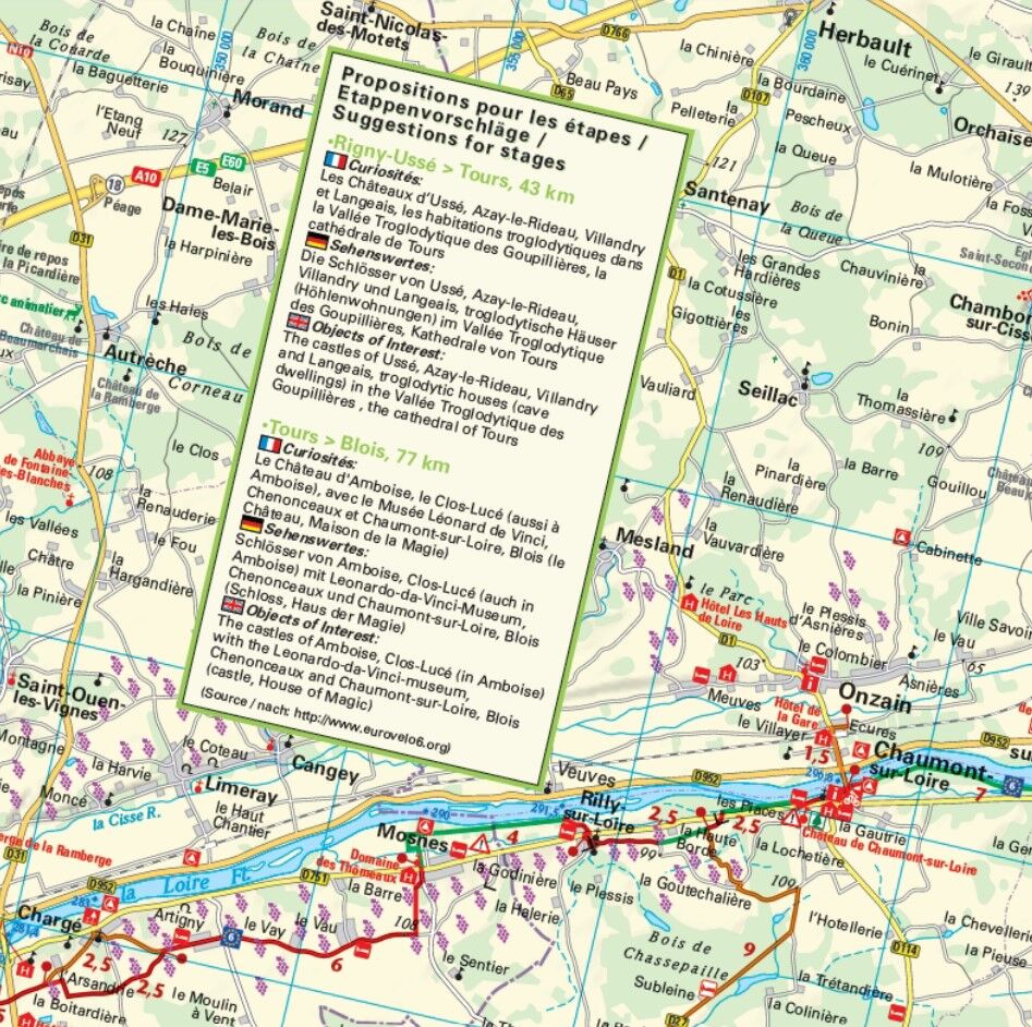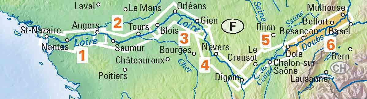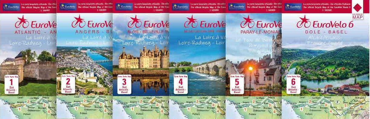 In this 6-part cycle map set, you will experience one of the most beautiful and relaxing cycle routes along the EuroVelo 6 route across France. From the Atlantic Ocean along the Loire, the Canal du Centre in Burgundy, the Saône, through the valleys of the Doub...