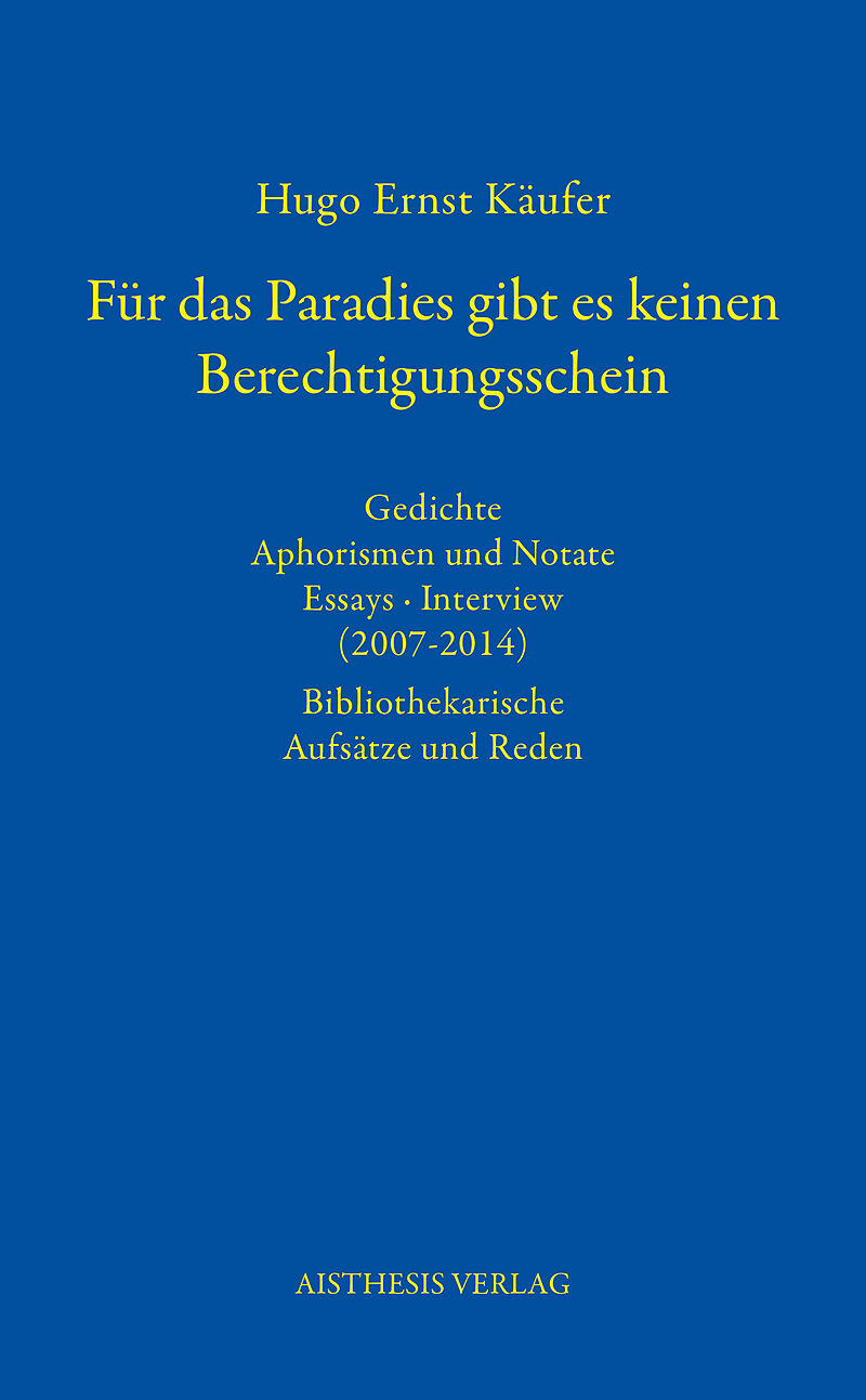 Der Band bildet den Abschluss der bislang vorliegenden Werke-Teilsammlungen Hugo Ernst Käufers. Er enthät seit 2007 entstandene literarische Arbeiten Käufers. Den Schwerpunkt bilden die in Legden entstandenen Gedichte, Aphorismen und Notate aus seine letzten L...