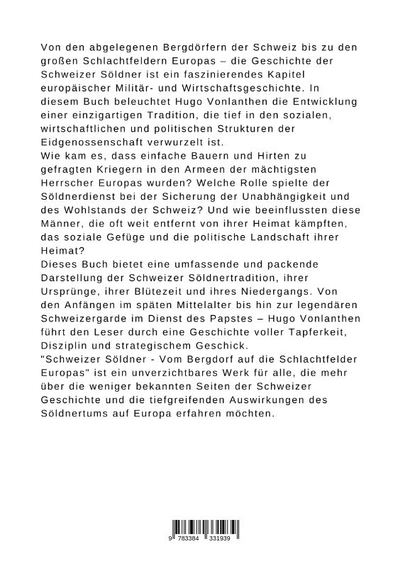 Von den abgelegenen Bergdörfern der Schweiz bis zu den großen Schlachtfeldern Europas die Geschichte der Schweizer Söldner ist ein faszinierendes Kapitel europäischer Militär- und Wirtschaftsgeschichte. In diesem Buch beleuchtet Hugo Vonlanthen die Entwicklung...