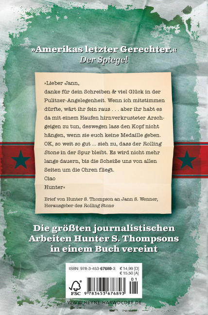 Er ist ein einmaliges Phänomen: Ikone der amerikanischen Gegenkultur, König des Gonzo- Journalismus und wegweisender Kultautor. Hunter S. Thompson ist nach wie vor in aller Munde, seine Meisterschaft bleibt unerreicht. Die Rolling-Stone-Jahre setzen ihm ein De...