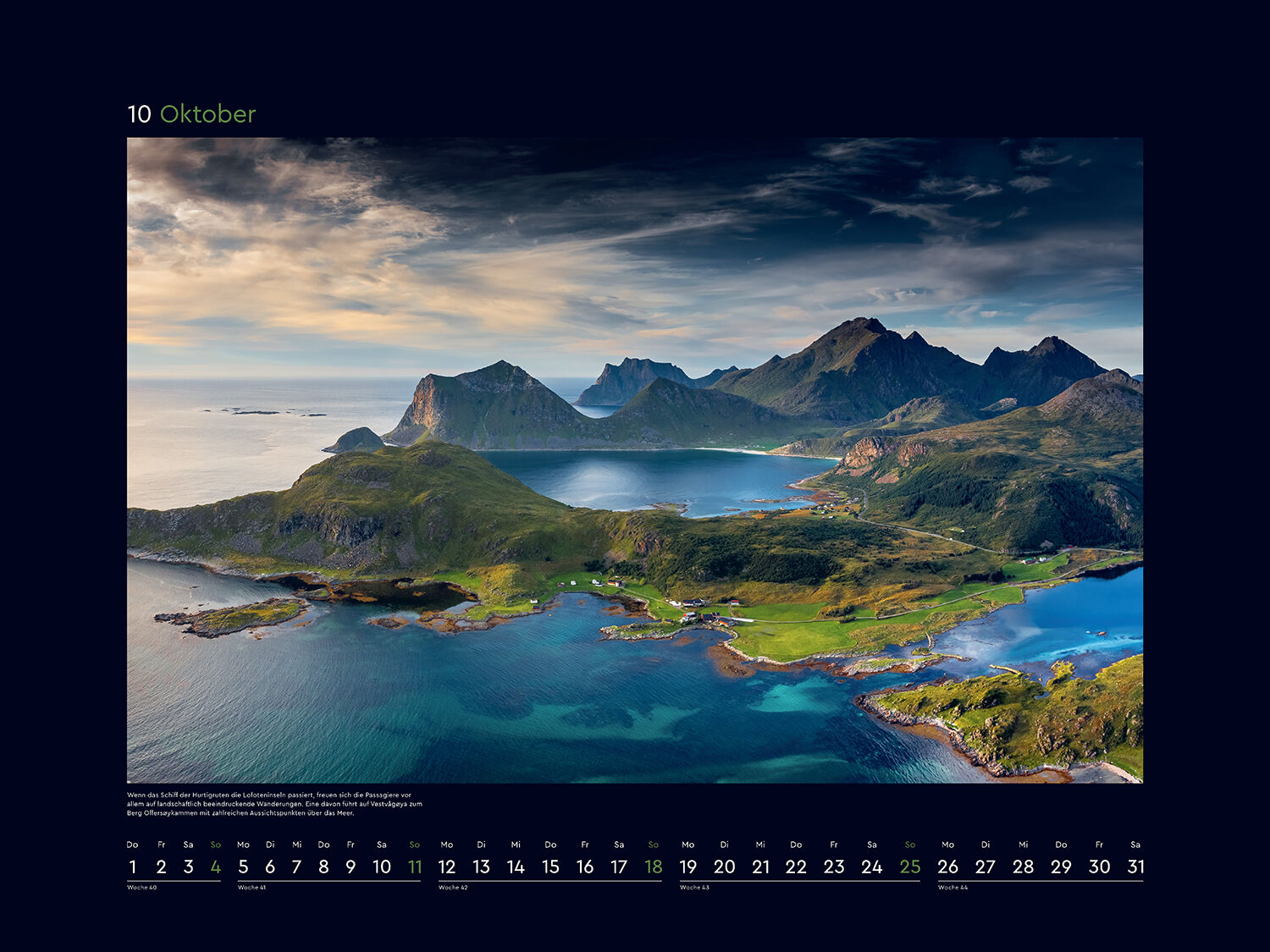 Mit zwölf herausragenden Fotografien schmückt dieser opulente, großformatige KUNTH Wandkalender Hurtigruten für 2026 in edlem Design jedes Zimmer egal ob im Büro, im Home Office oder in Wohnräumen. Einzigartige Naturlandschaften kombiniert mit norwegischer Ga...