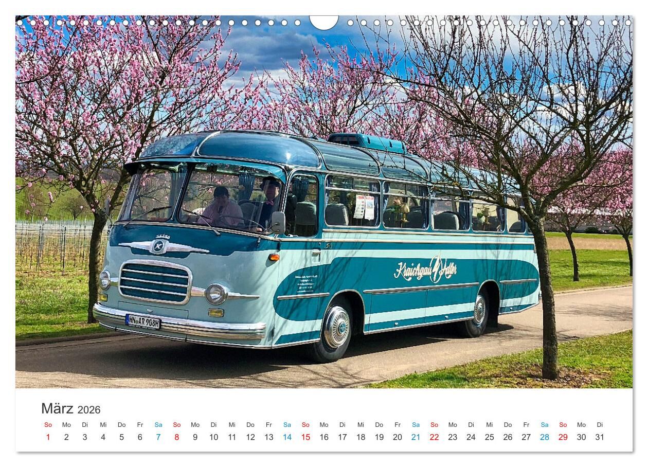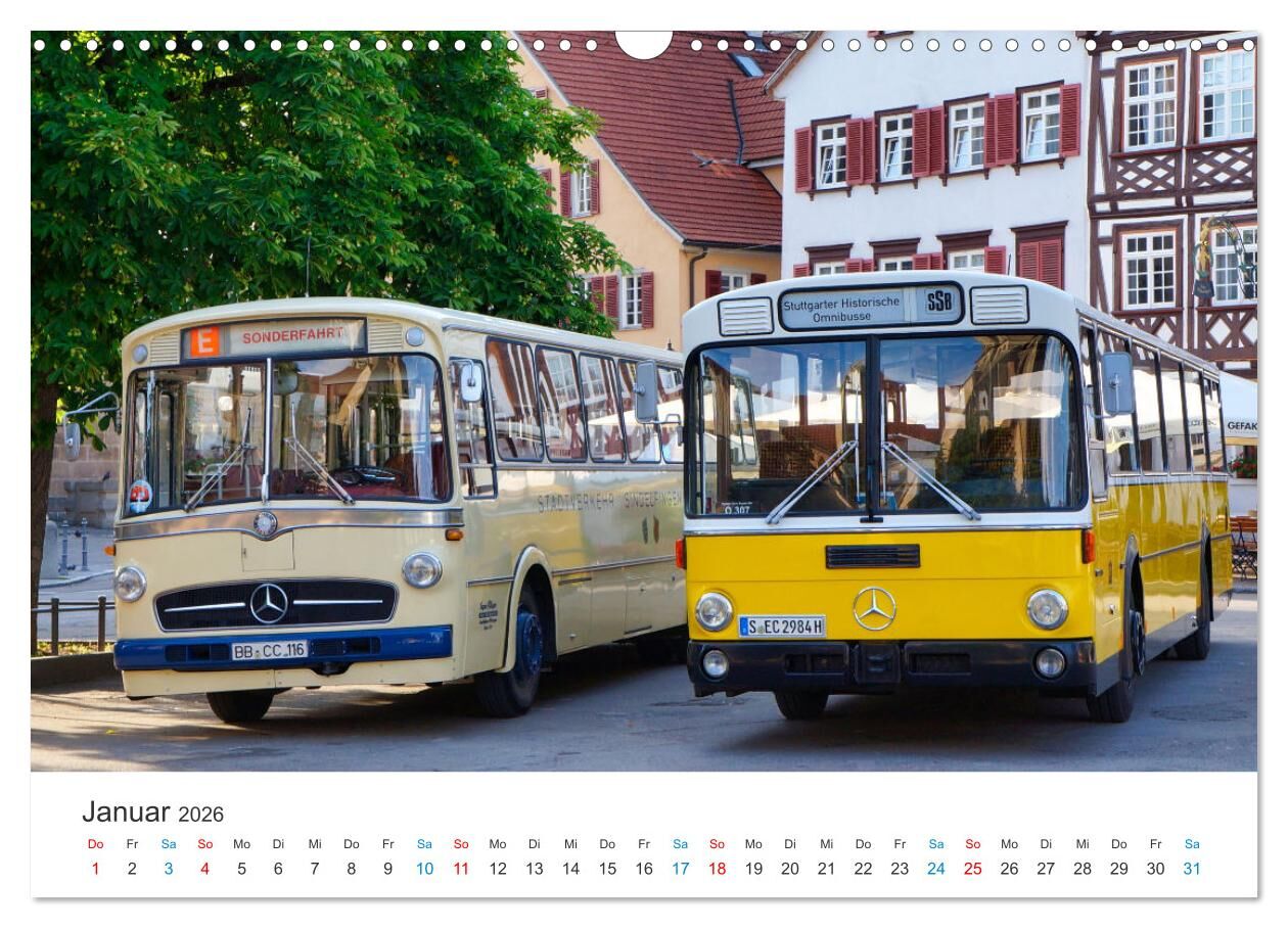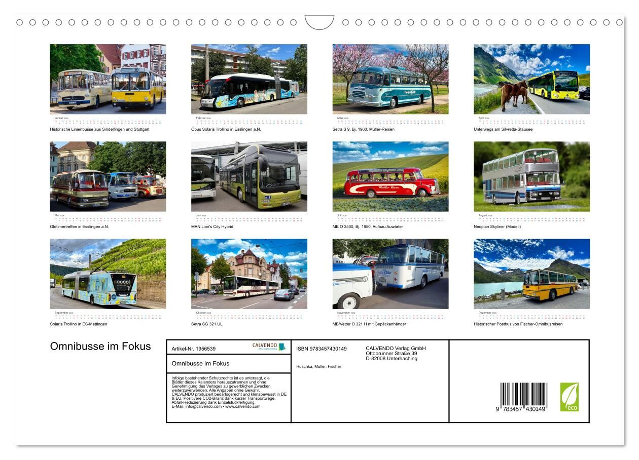 Ob zeitlos klassisch-schöne Omnibusse oder Fahrzeuge in modernem Look: Hier sind zwölf attraktive Modelle versammelt. Dieser Kalender enthält auch Fotos aus dem Fuhrpark von Müller Reisen, Massenbachhausen und Fischer Omnibusreisen, Weilheim/Teck.
