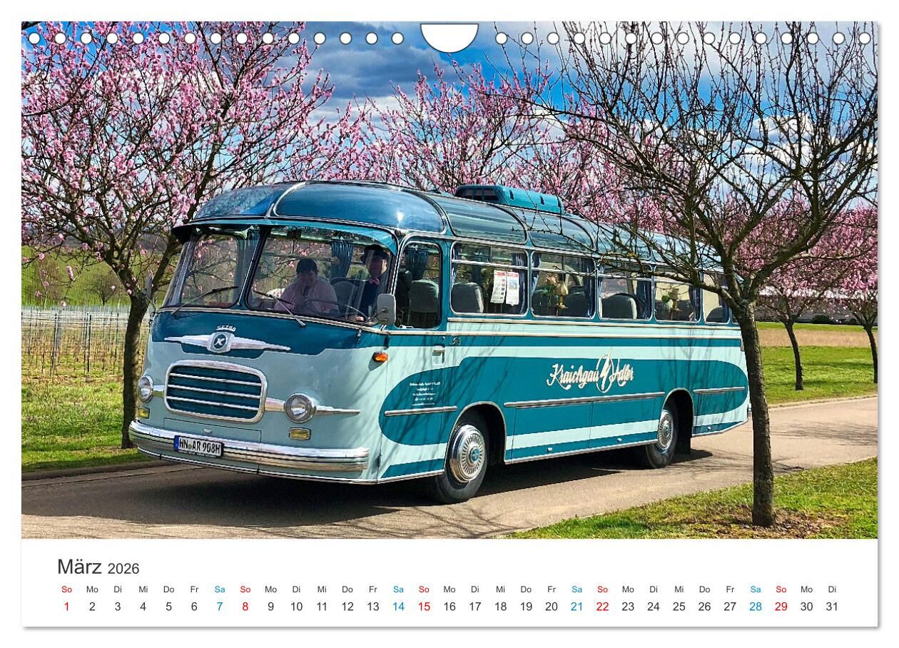 Ob zeitlos klassisch-schöne Omnibusse oder Fahrzeuge in modernem Look: Hier sind zwölf attraktive Modelle versammelt. Dieser Kalender enthält auch Fotos aus dem Fuhrpark von Müller Reisen, Massenbachhausen und Fischer Omnibusreisen, Weilheim/Teck.