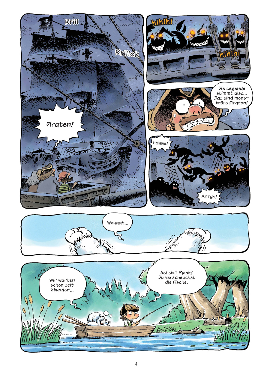 Nachdem sie bei einem gemütlichen Angelausflug eingeschlafen sind, finden sich Monk und Archibald auf offener See wieder. Ohne jegliche Lebensmittel! Zum Glück werden sie von einem Kriegsschiff auf Piratenjagd gerettet. Doch dann taucht plötzlich ein Geistersc...