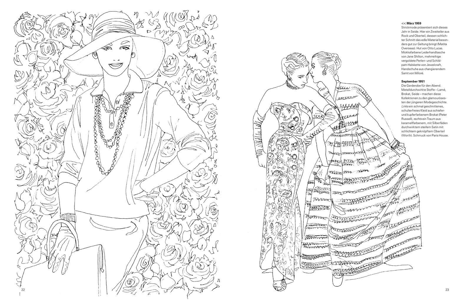 Die opulenten und femininen Modekreationen der 50er-Jahre sind bis heute unvergessen. In schwungvollem Stil zeichneten und schneiderten die Couturiers elegante Sanduhr-Silhouetten, üppig fließende Kleider und ausladende Hüte. Das VOGUE-Malbuch lässt diese glam...